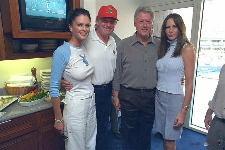 特朗普与克林顿往事 2000年,还是普通地产富豪的特朗普前去拜访时任美国总统克林顿,两人各自搂着一位模特拍下了一张合影,这张照片也留下了不少耐人寻味的细节。 让人意外的是,克林顿怀中的模特正是梅拉尼娅,彼时她与特朗普已经相识两年,只是尚未发展成恋人关系。 而特朗普怀里的那名模特,身份至今都无人知晓。值得一提的是,这种正式的会面场合,克林顿身边本该出现的是希拉里,而非名模梅拉尼娅,从照片中两人的状态来看,显得十分亲密,远不止普通朋友的关系。 更有意思的是,这张照片拍摄的5年后,也就是2005年,梅拉尼娅嫁给了特朗普,成为了特朗普的妻子。 如今再看这段过往,让人不禁好奇,克林顿得知梅拉尼娅嫁给特朗普时,心里会是何种滋味?