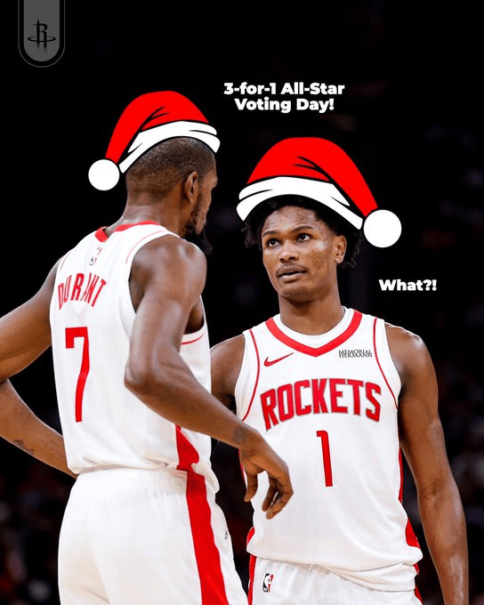 火箭官方社媒动态配文:“我们的圣诞心愿,就是看到火箭能有人登上全明星赛场呀!”