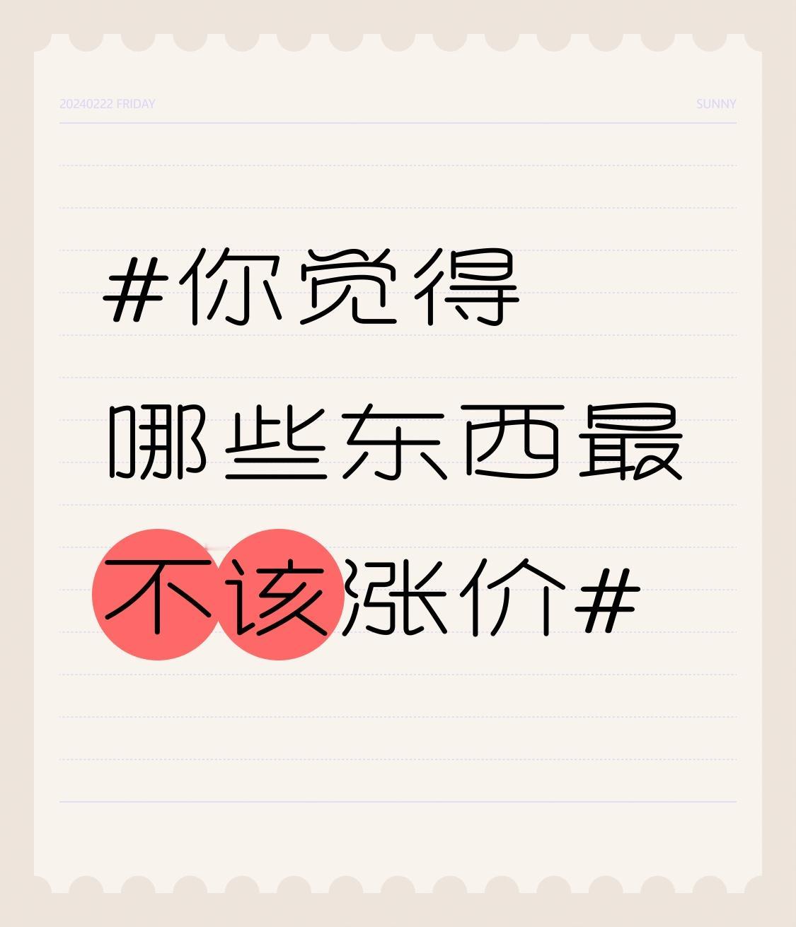你觉得哪些东西最不该涨价 我觉得水果、柔纸巾、文具和面包最不该涨价。现在去水果店,水果价格像坐火箭一样,对普通人来说不买好像也没多大影响。柔纸巾和普通卷纸功能差不多,价格却翻了几番,日常用卷纸完全足够。文具更是过分,一支普通黑笔能卖大几十元,孩子学习成本直线上升。面包以前是实惠早餐,现在价格涨得让人心疼。 此外,男婚女嫁的聘金也不该疯涨。以前给聘金是礼仪习俗,贫富有所差异很正常。但现在动不动八万八、十八万,二婚大妈甚至要三十八万,还有各种奇葩费用,这不是娶媳妇,是“抢钱”。聘金过高让男方背负债务,婚后生活咋过?真希望能好好整治这不良风气。