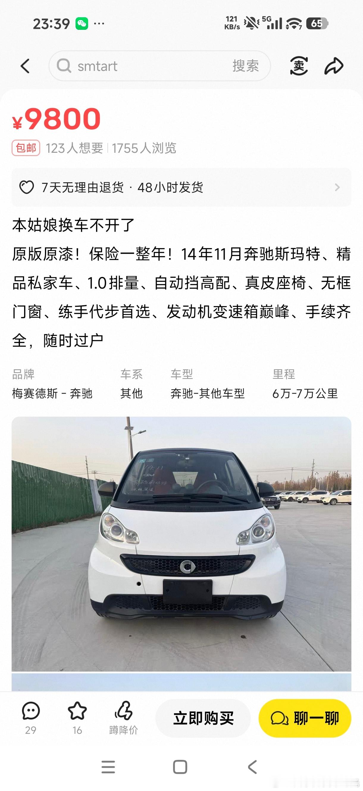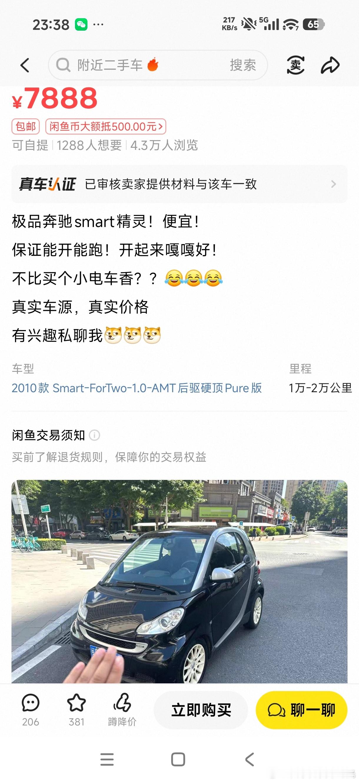 这代Smart很多已经四位数了,从玩具的角度看买个没事代代步,狭窄的街边停停车还挺好玩的。