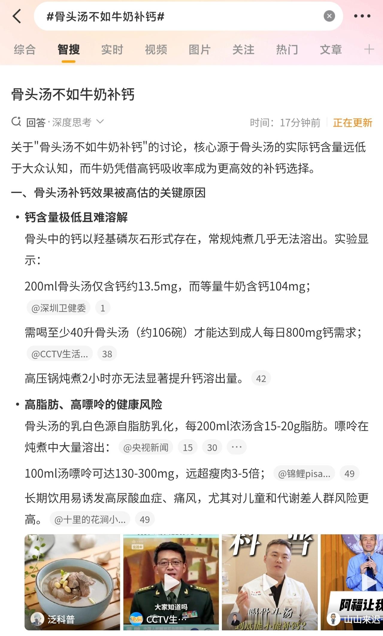 骨头汤不如牛奶补钙老一辈的补钙玄学,就是天天让我喝骨头汤,说补钙,我差点就信了。直到我看了一组数据,彻底懵了,你吭哧吭哧喝一大锅浓白骨头汤,里面的钙还不如一口牛奶多。汤里的嘌呤倒是实实在在的,中老年养生喝这个,纯属给身体加负担。炖好几个钟头,觉得把最好的营养都熬进汤里了。结果呢?钙全留在那根光溜溜的骨头里,真正的蛋白质在肉上,方向错了,补钙补个寂寞。