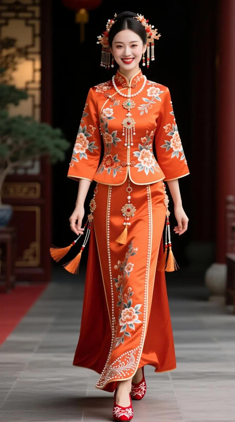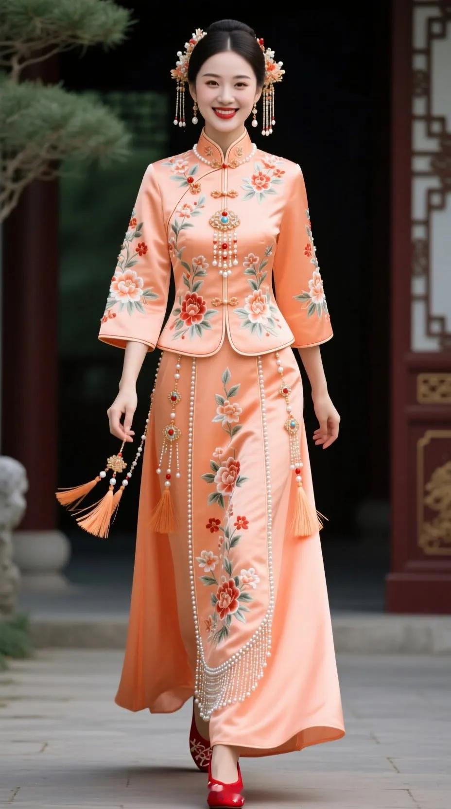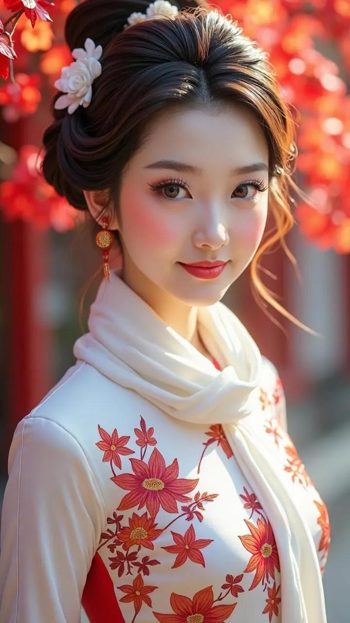红白相间的旗袍,搭配精致的盘发和花饰,尽显东方古典美!