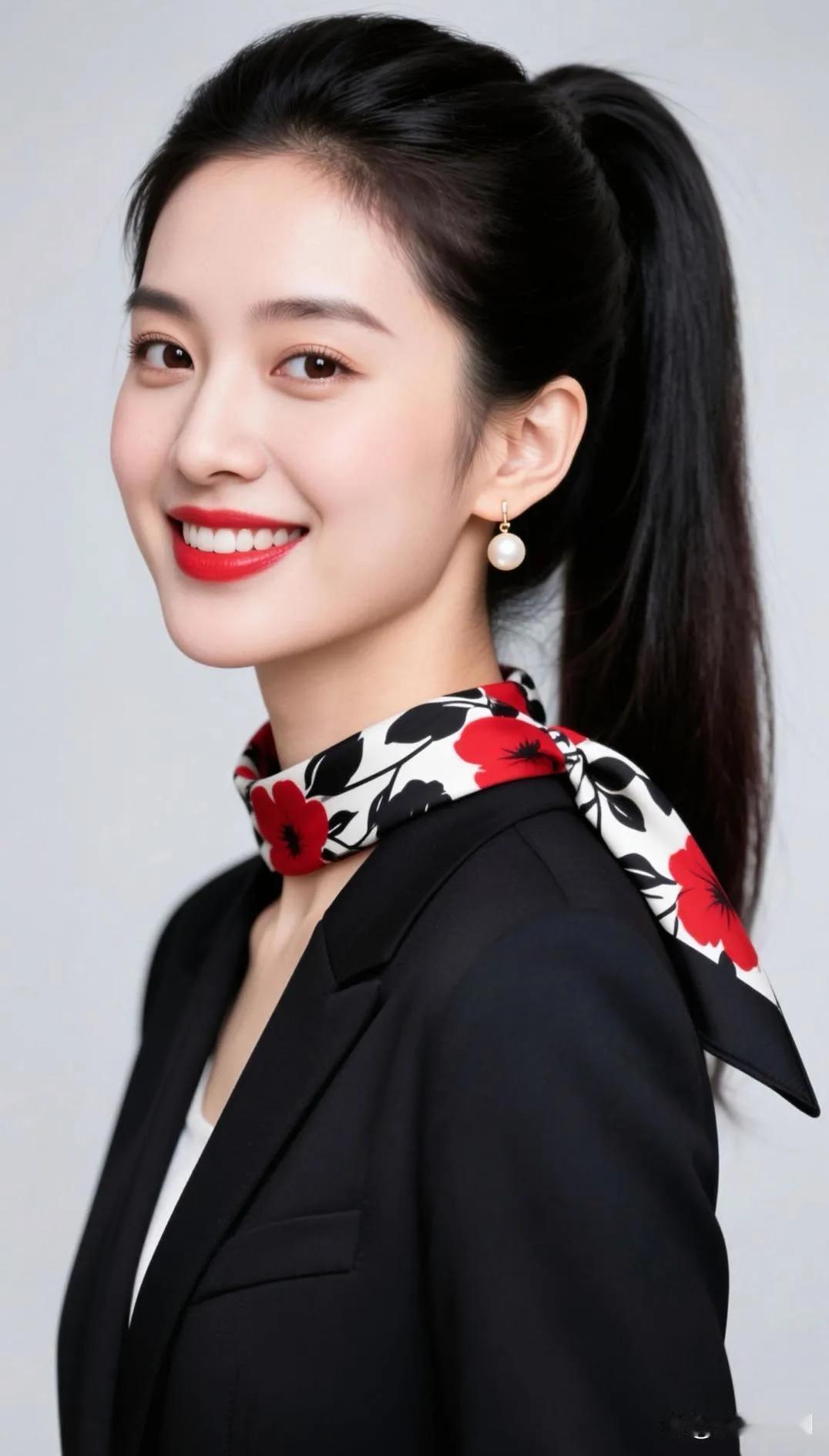 优雅黑裙,甜美笑容,红唇白花,尽显迷人魅力!💄🌹👗