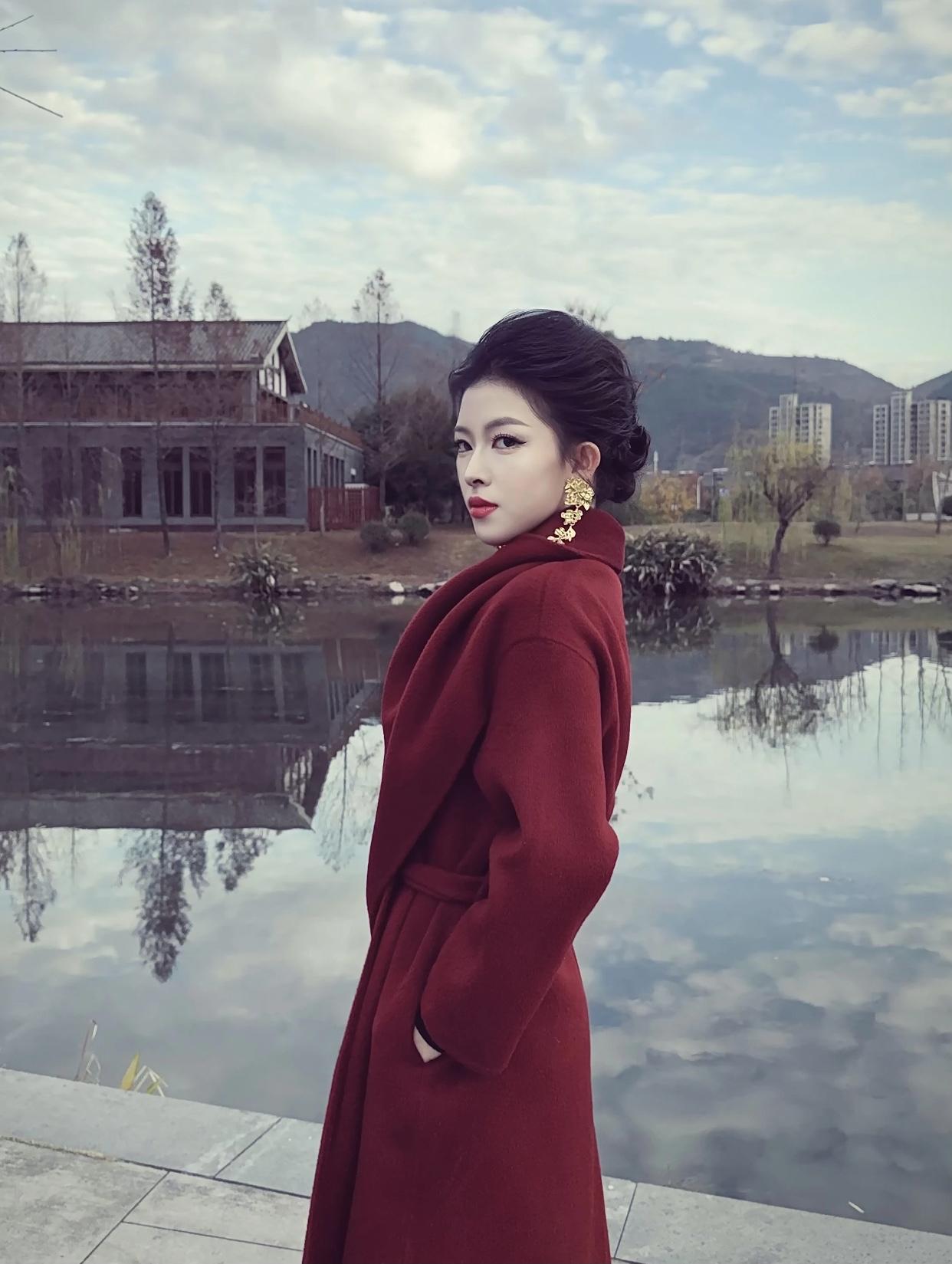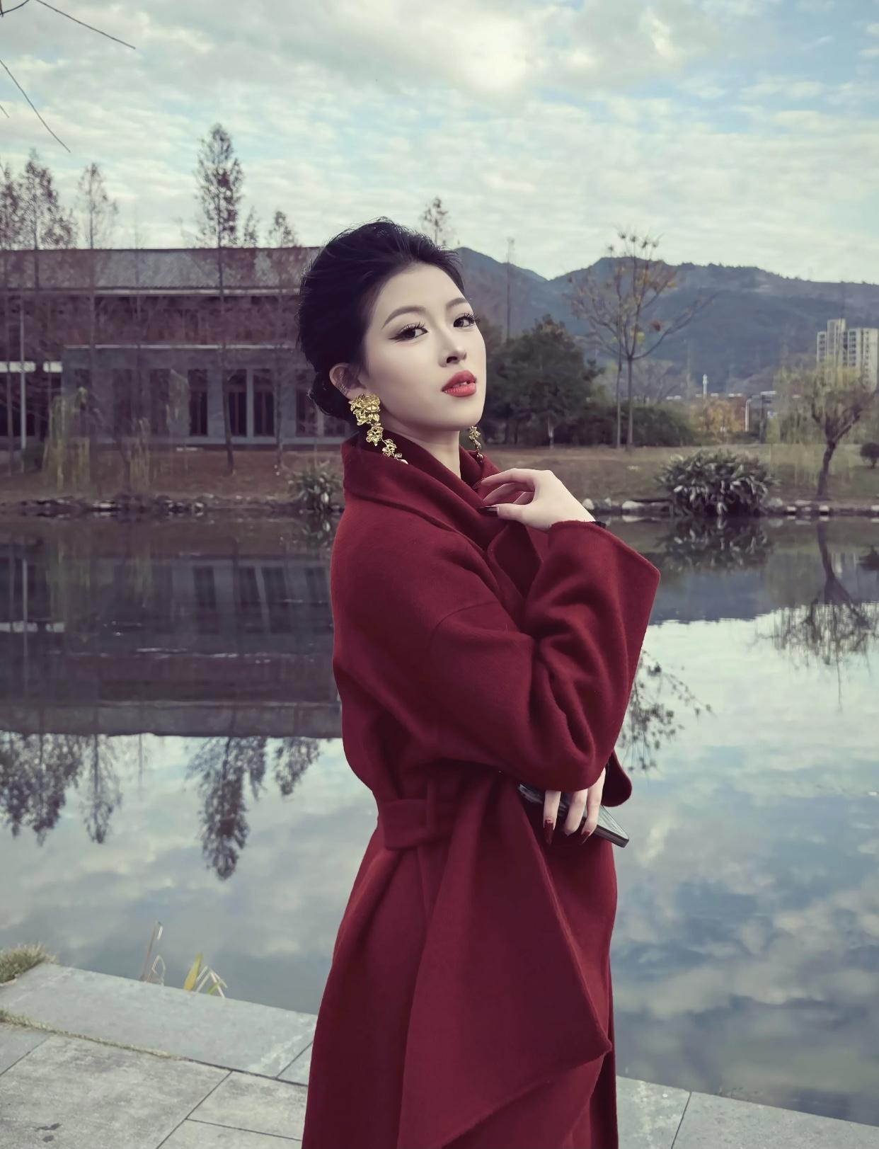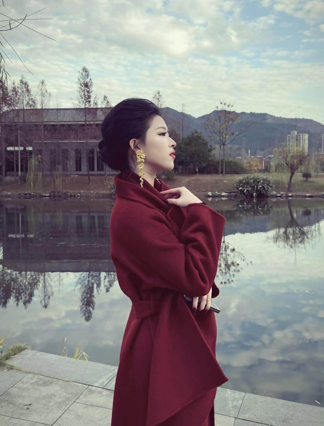 你心中的美女啥模样优雅红衣女子,静立湖畔,沉思如画。