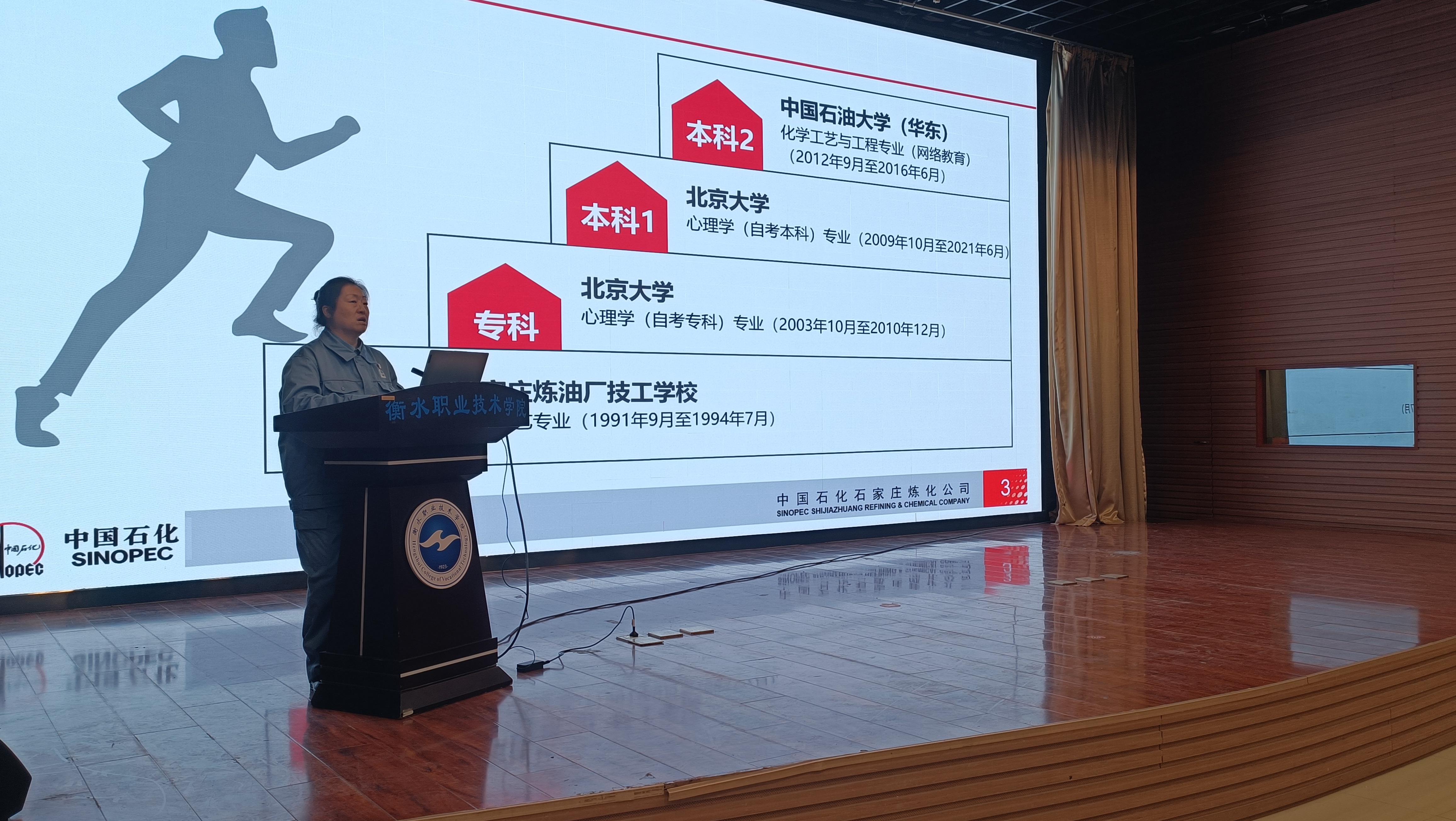 12月24日,衡水市职业技术学院报告厅内掌声雷动,三名“大国工匠”讲述自己的蜕变历程。一场“身边榜样讲身边事”的精神盛宴,在校园里播撒崇尚劳动、追求卓越的种子,让劳模精神、劳动精神、工匠精神在青春沃土中生根发芽。