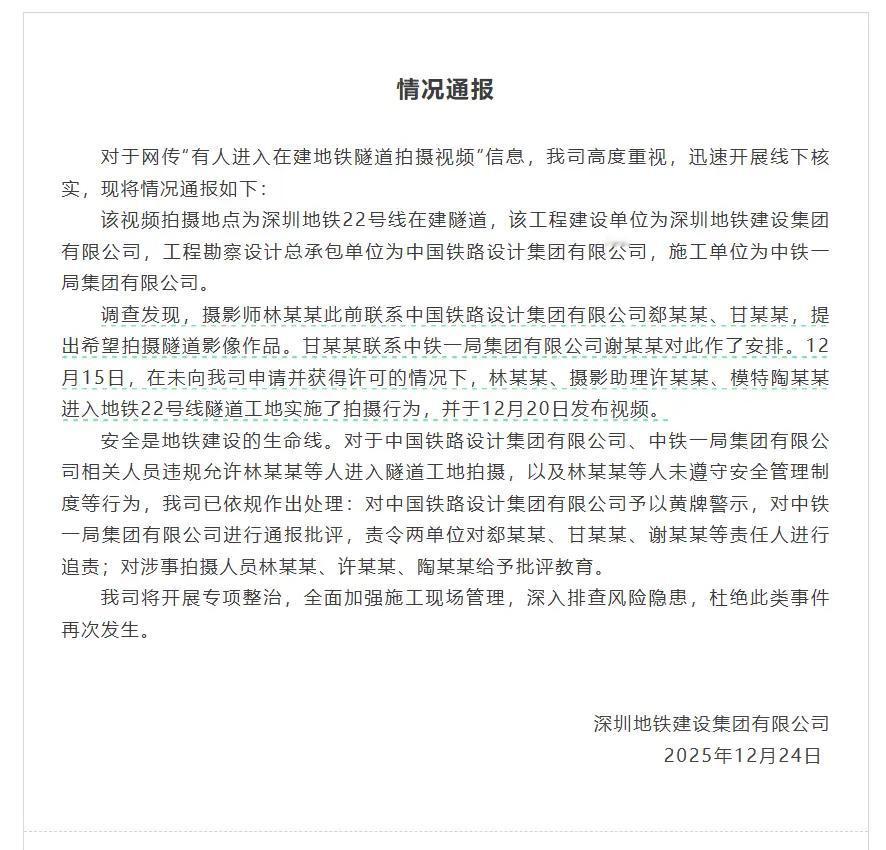 大家别慌,都是临时工干的,已经开除了。她是怎么进去的?工人没有安全帽你说破天也不会放你进去,现在都实名制刷脸了。新闻一出来就觉得有猫腻,肯定是有人违规操作,要不然这种无视生命安全的行为,一般人都不会做。也有一些二愣子为了流量,什么事都敢干。对这类人,一是永久封号,二是禁止其个人视频上网,断其出名之路。三是依法追究责任,该法办就法办。
