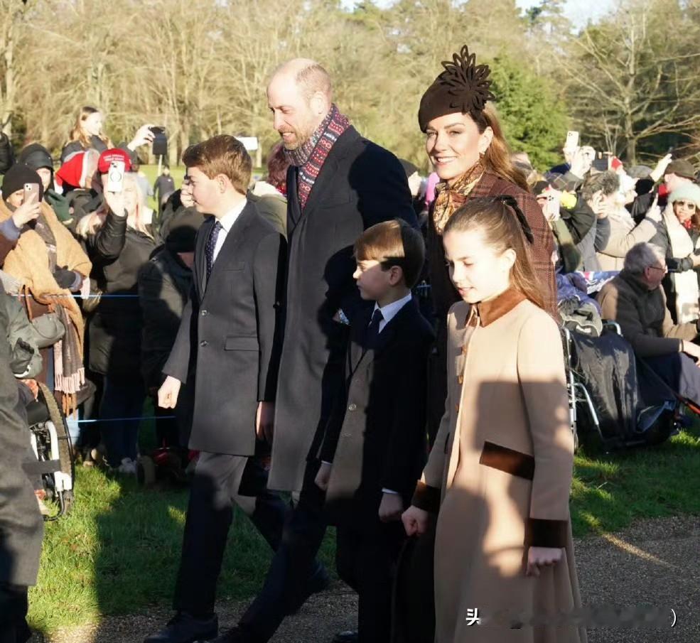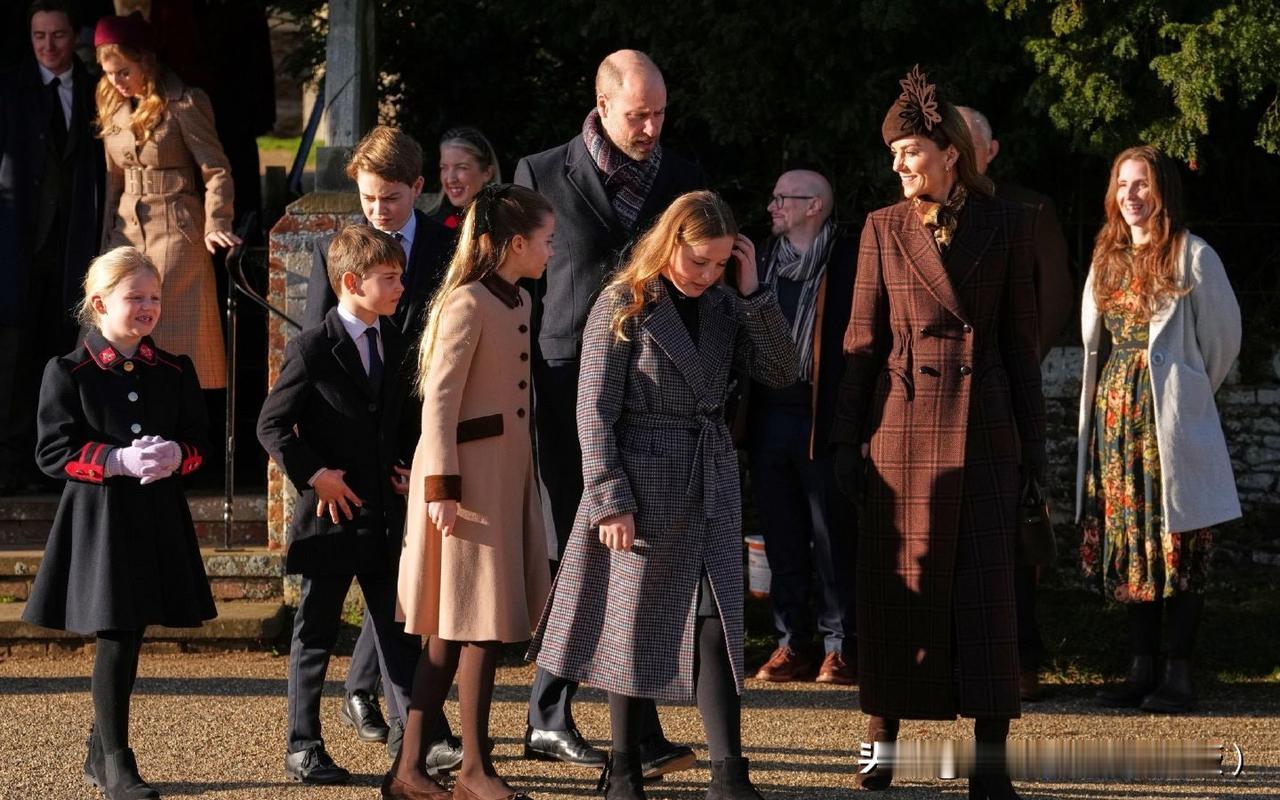 昨天一大家子人出席了圣诞节礼拜,一年一次,每年都能看到威尔士三宝的变化,今年依旧是乔治三兄妹和堂姑家的两个妹妹一起出发。给女王提包的女孩米娅也长高了,依旧和夏洛特公主走在一起。爱丁堡公爵夫妇领着一双儿女出发!