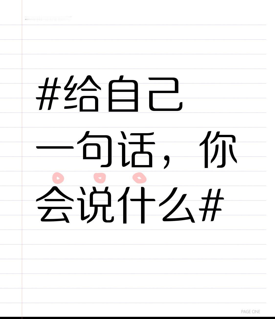 如果给自己一句话,我想说:“别把自己逼太紧啦,你不是超人。” 就像很多人,每天被家庭和工作追着跑,像个不停旋转的陀螺。为了家庭琐事忙得晕头转向,为了工作任务熬夜加班,把自己搞得疲惫不堪。其实,偶尔“摆烂”一下又何妨?孩子偶尔吃顿外卖不会怎样,工作做不完明天接着干。别太在意别人的眼光,自己过得舒心才最重要。累了就歇,饿了就吃,好好爱自己,这才是生活的真谛。