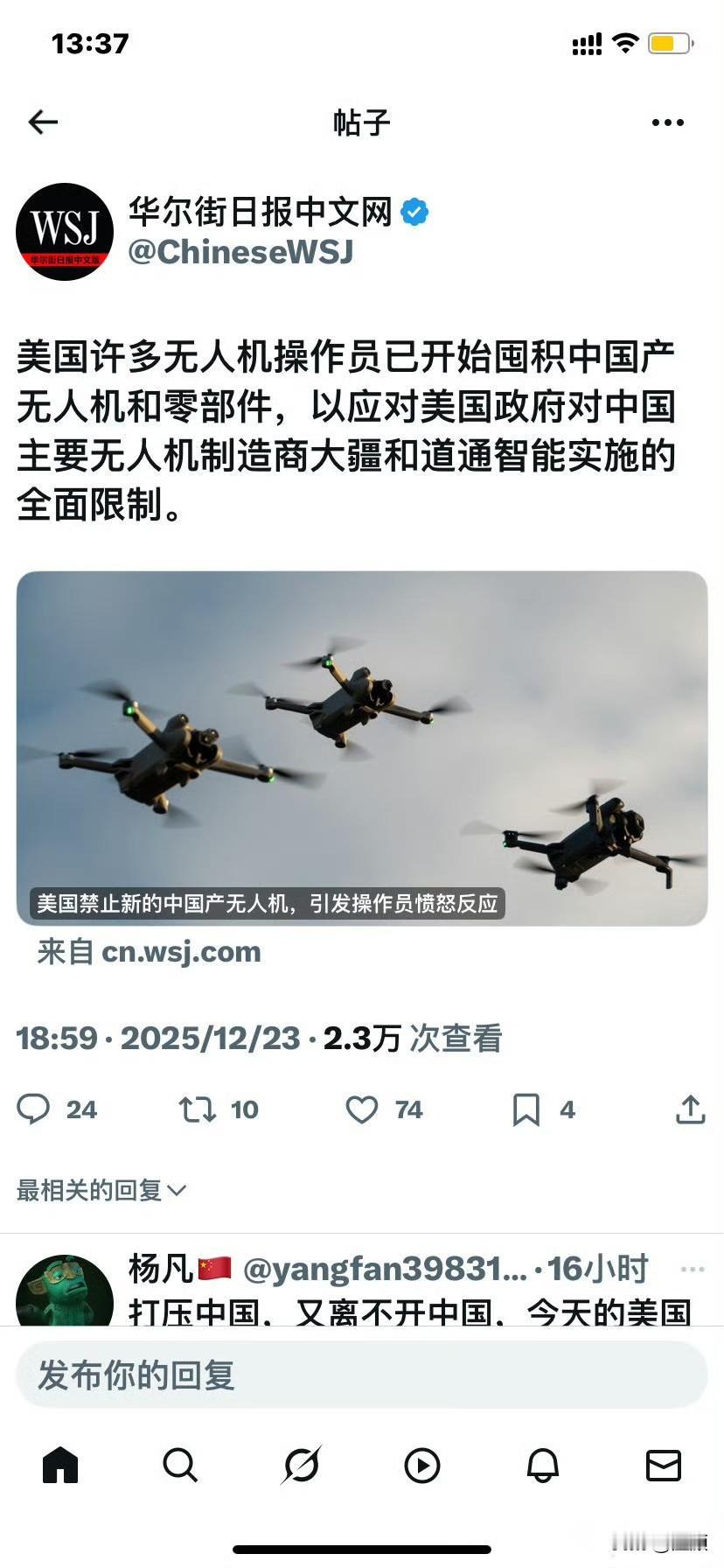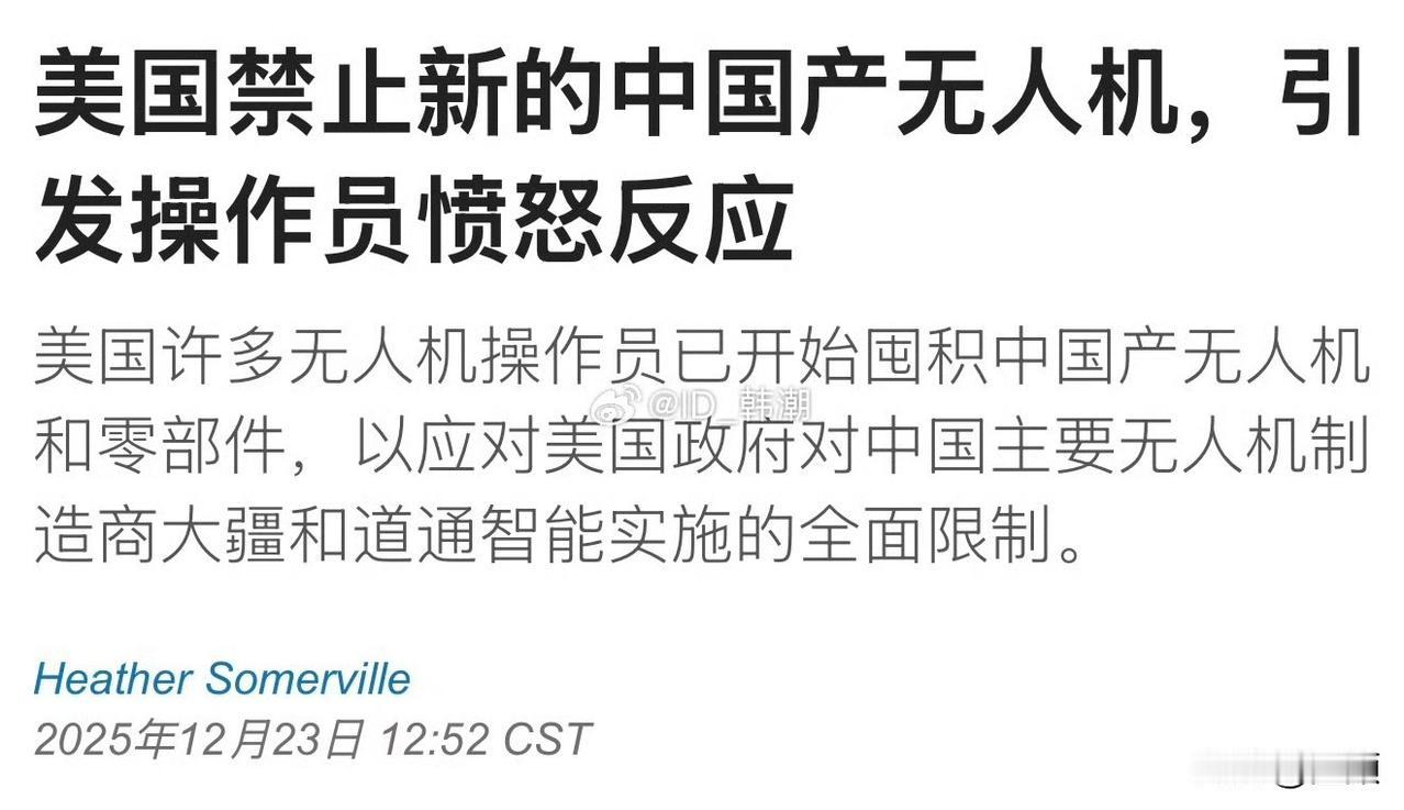 抢疯!大疆涨价18%被秒空… 12月22日,美国将大疆等中国无人机整体纳入FCC“管制清单”,然而禁令签字仪式的余温还未散去,华盛顿的消费者已经冲上亚马逊开启“囤货模式”——大疆Mavic 3 Pro一夜之间涨价18%,依旧被瞬间抢空,货架上的现货秒变“稀缺资源”。 这波疯狂囤货的背后,是美国市场对中国无人机的深度依赖。美国“无人机倡导联盟”紧急发函国会预警称:全国50万注册飞手、4.8万家植保与测绘小公司,80%的机队都是大疆。“一旦断供,明年的棉花喷洒季、山火巡查季全得停摆”,美国本土品牌Skydio的同档机型售价高达1.2万美元,是大疆的三倍,续航却短了13分钟,农业州的小老板们根本承担不起替换成本。 华盛顿的“去中国化”算盘,显然打错了地方。复旦大学宋国友教授的测算显示,2025年美国无人机市场规模预计达260亿美元,其中67%的硬件价值都流向了中国供应链。这意味着,美方强行切割的不仅是贸易关系,更是自家市场的“大蛋糕”,相当于直接切掉三分之二的产业价值。更尴尬的是,美国本土企业根本离不开中国供应链:Skydio的电池、电机磁钢七成采购自珠三角,而五角大楼承包商直言,美国无人机的电池、电机和磁铁市场几乎100%由中国掌控。 中方的回应早已箭在弦上。12月23日,商务部发言人何亚东明确表态,美方此举是典型的单边霸凌,中方已备好反制清单,只待一声令下。更关键的是,中国掌握着产业链的“命门”:若祭出稀土加工许可证管制,美国无人机整机成本将再涨30%;而商务部研究院的模拟显示,一旦限制高精度陀螺仪、毫米波雷达对美出口,美方相关产业2026年出货将下滑42%,直接丢掉110亿美元订单。 目前,海关口径已将大疆零部件税号纳入“关键物料”观察清单,一旦美方扩大追溯范围,中方可在30天内将稀土永磁、激光陀螺、碳纤维预浸料等核心部件一并列入出口管制。届时,不仅美国飞手买不到高性价比的无人机,就连救火队、农业从业者的正常作业都将受影响,美国国会恐怕得为额外增加的20%设备预算头疼。
