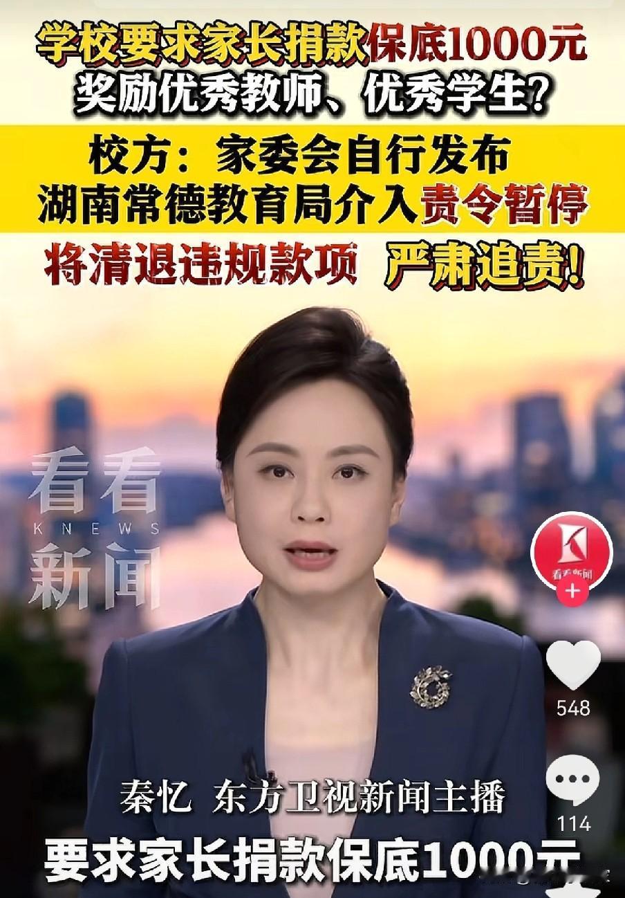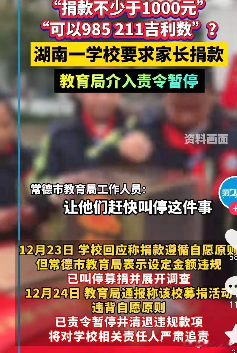 “每人捐款不少于1000元,家庭特别困难的可以私聊”。谁也猜不到,这份打着“捐款”的爱心,居然是家长以“奖励师生”的口号,借着学校的教育基金名义发展的募捐。 12月32日,湖南某高校的家长群里,就有人鼓动这份捐款,甚至提出条件好的就多捐,数字可以是“985,211”,寓意都要考上名校。 事件曝光后,所有人都蒙了,家长怕不捐款,担心孩子受影响,这又面临考大学的关键时刻。学校这边呢,虽然有自愿捐款的公益活动,但是可没有设置保底金额,很多还是1块,5块的学生捐款。教育局呢,接到消息立刻通知学校停止募捐,返还所有捐款。 这事一出,不少人都觉得挂不住脸,这么一所名头响亮的高校,愣是被这么一出乌龙搞得颜面尽失,不知情的人还以为学校穷到要靠家长“摊派”过日子! 网友们也吵翻了天,有人说家长的操作越界又离谱,借着公益的名义绑架他人,完全是道德绑架;也有人觉得学校监管不到位,才让这种奇葩募捐有了可乘之机;还有人替家长喊冤,称他们也是怕孩子受委屈才敢怒不敢言。 那么问题来了:家长群里的这类“自愿募捐”,到底该由谁来监管?面对这种带门槛的劝捐,家长们该不该硬气拒绝?