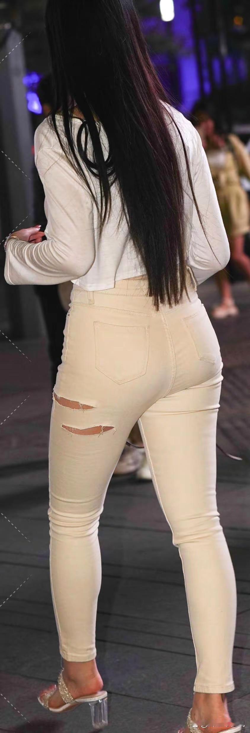 白色紧身牛仔裤搭配。辣妹穿搭大赏 破洞牛仔裤 小姐姐一身白色打扮真的好性感,牛仔