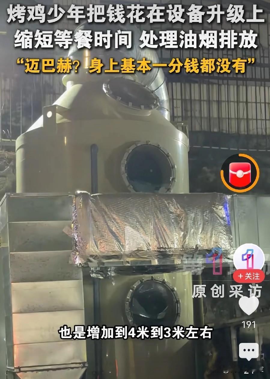 烤鸡少年的大火,流量的爆增,加大了烤鸡的数量,减少了等待的人,还把烟道扩高了,避免被投诉烟火问题,可这样真的好吗? 很多人都说烤鸡少年还不明白此刻的处境,就没有哪一家所谓的“网红店”赚了钱,把钱投入到设备里,店里的。都知道收入靠的就是那转瞬即逝的流量,这烤鸡大家真的是冲着“味道”好来吃的吗? 那不过是李维刚带来的网红噱头,还有少年小小年纪就打拼事业的精神而感动,再加上流量博主们不停的拍拍拍,就他们自己吃互联网这波饭的人,都带来了不少营业额。可这些散去,又被新的“网红”带走,这么多的设备投入,值得吗? 长春的大雷烧烤店老板娘都干到开路虎了,少年烤鸡的迈巴赫也是迟早的事,这利润可想而知啊。流量带来的红利是甜的,但也是烫的。疯狂扩产的决定,到底是抓住机遇的明智之举,还是一场赌上未来的豪赌?