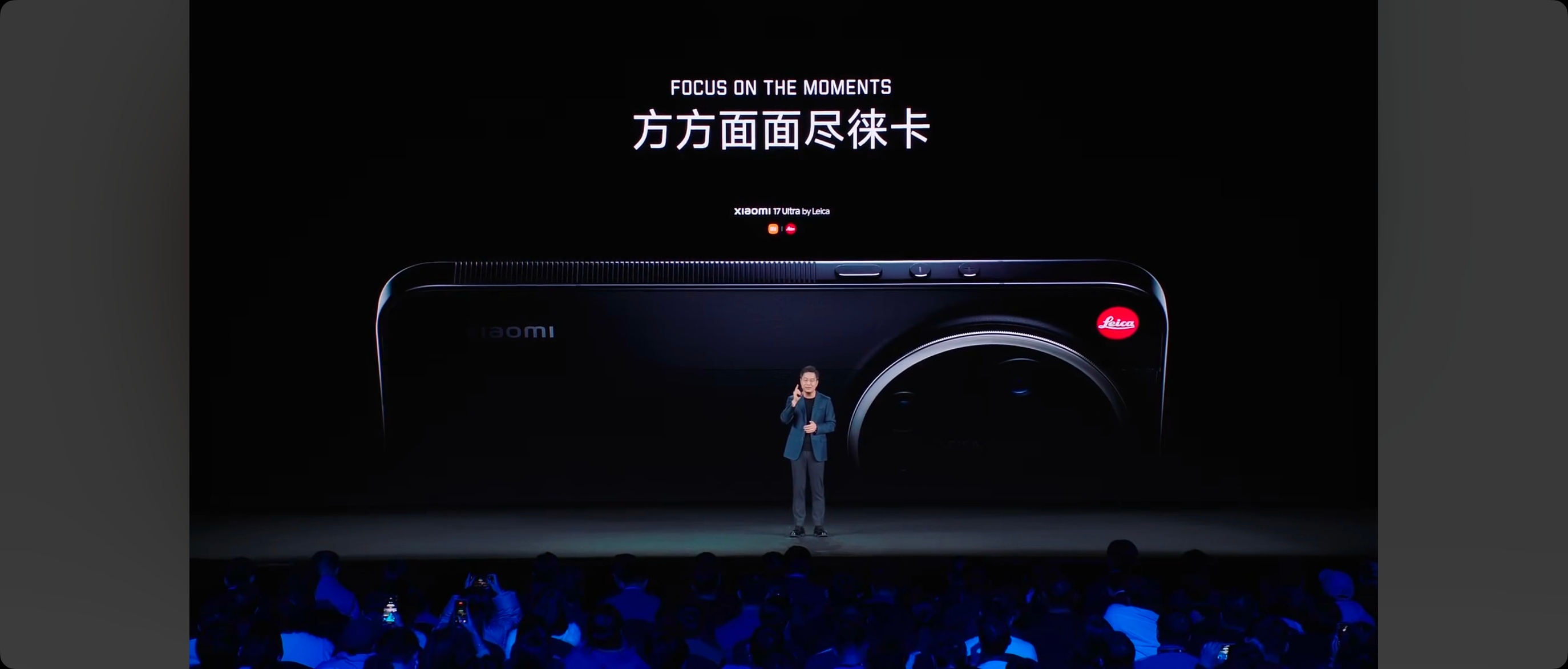 小米开小米17ultra新品发布会,卢伟冰、许斐他们在台上讲,雷总在观众席静静的