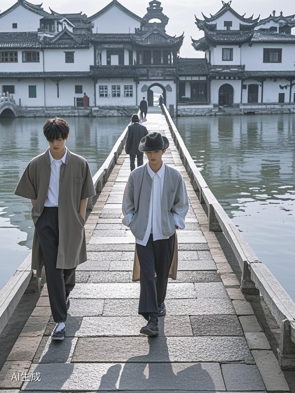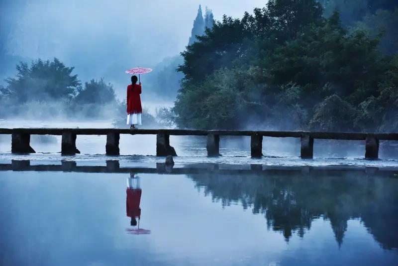 上联:过桥人影杳,请赐墨留香下联人走影随行