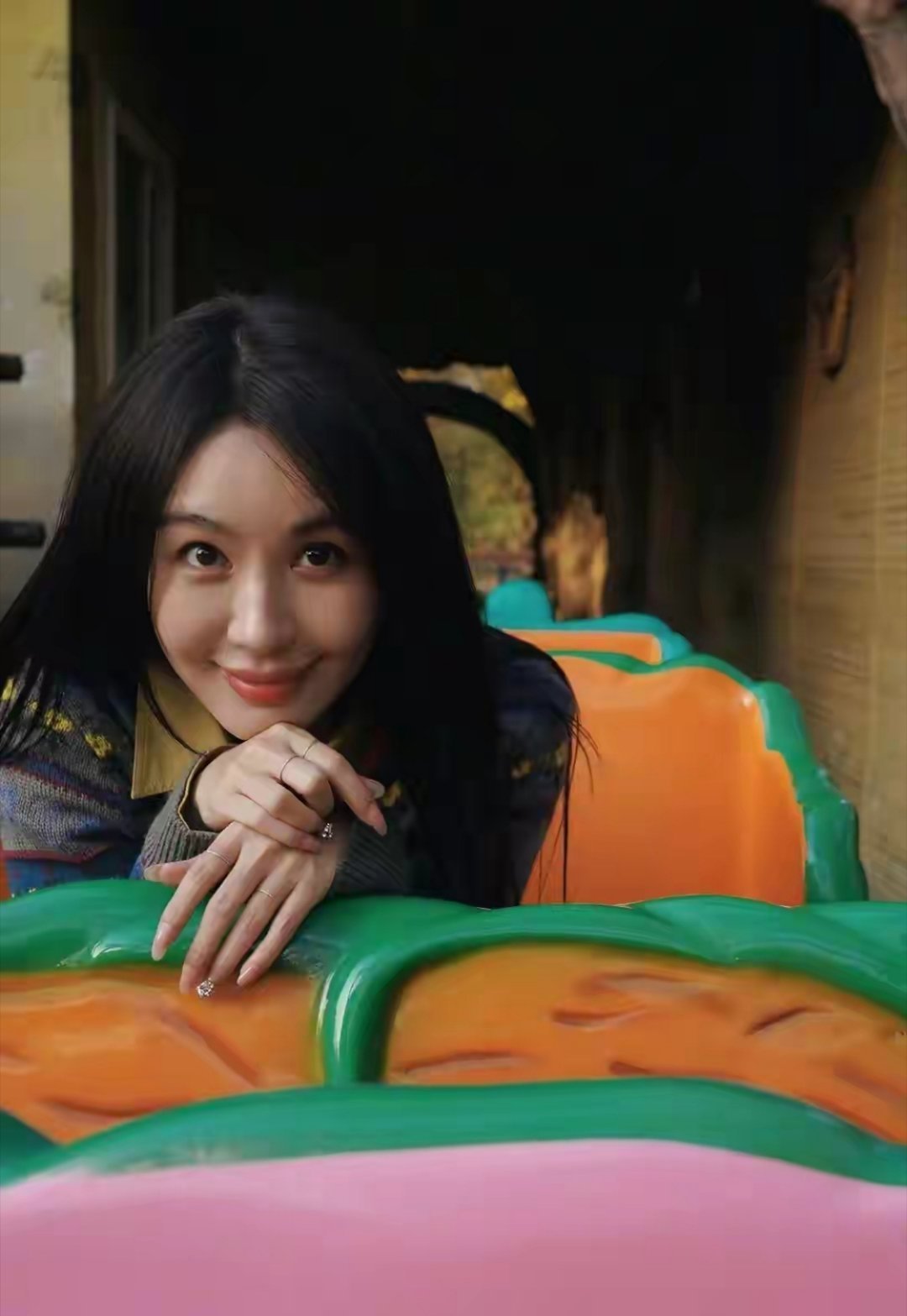 佘诗曼的叠穿穿搭太会了!格纹拼接外套配焦糖卫衣,俏皮又时髦佘诗曼的机场穿搭