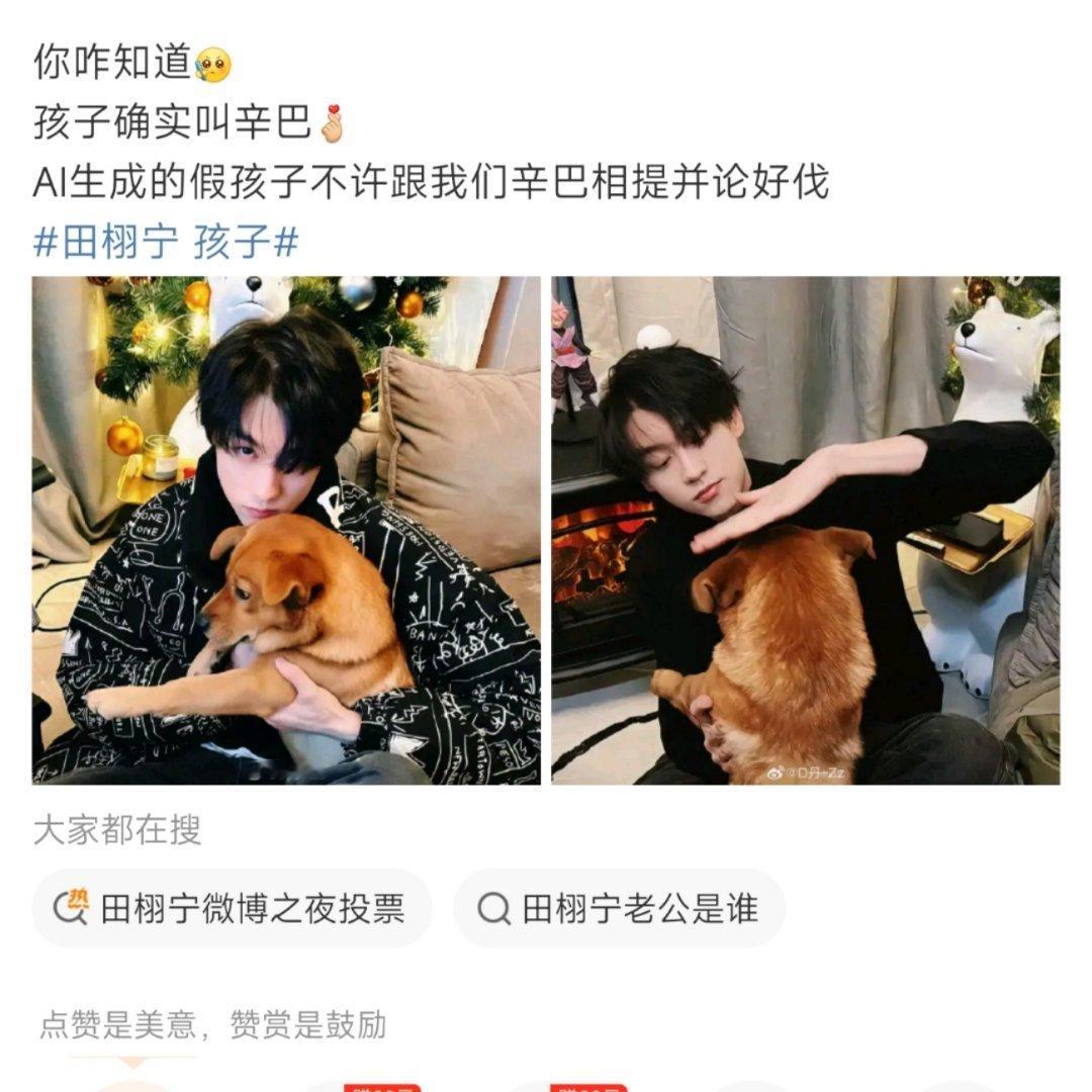 田栩宁 孩子田栩宁粉丝辟谣表示田栩宁抱娃照片为ai合成