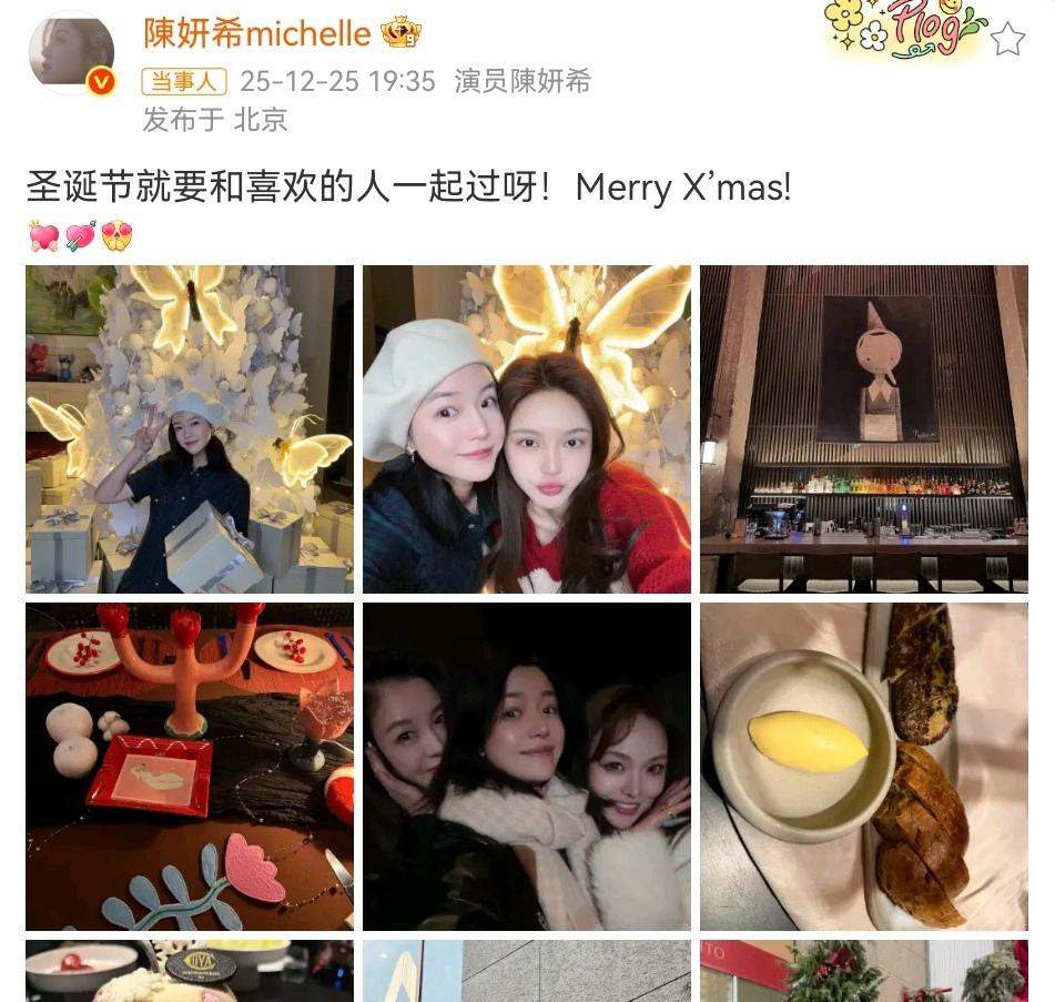 昨天是圣诞节,陈妍希很幸福,因为她能和喜欢的人一起过节,这个“喜欢的人”是谁呢? 除了好朋友之外,当然是她的儿子了。哇,陈妍希9岁的儿子好帅呀!难得一见的正面照(图二),照片中陈妍希的儿子穿着红色的衣服,被他小小惊艳了一下,乍一看像陈晓,再一看觉得像陈妍希。 各位,你们觉得他像爸爸多一点还是像妈妈多一点?