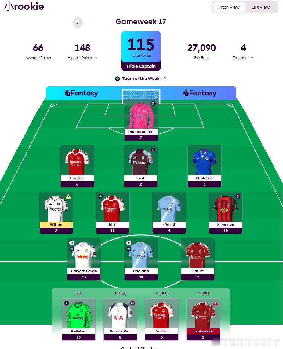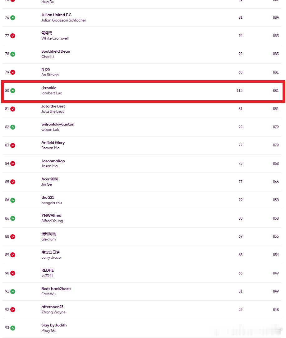 第17轮,小香范特西联赛联赛冠军小rookie 破百,115分 ,恭喜获得冠军请私信我留下快递地址和选择的钥匙扣奖品加入联赛的密码是:z13q9a 利物浦