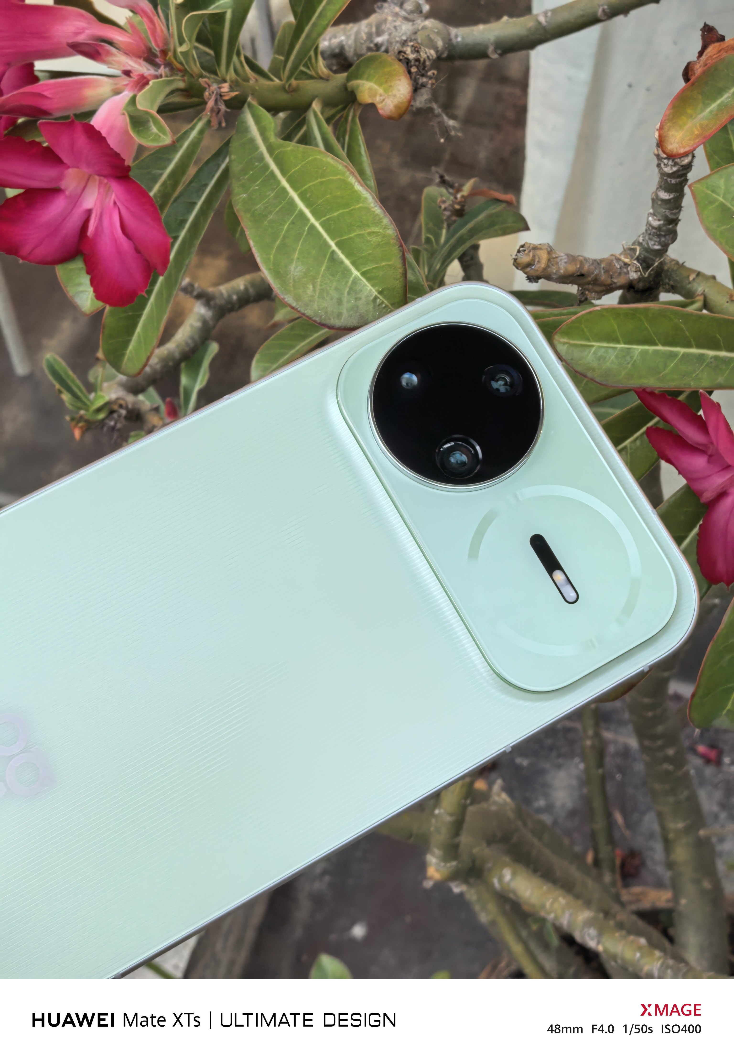 子弹兄今天买到的华为nova 15 Pro带感绿,我直接用华为Mate XTs 非凡大师三折叠拍的图,感觉如何?