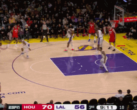 火箭3分钟打停湖人的三个原因! 北京时间12月26日,火箭与湖人的比赛来到第3节9分钟处,火箭一波10-3小高潮过后73-56建立17分优势打停湖人,而雷迪克叫暂停的三个原因: 图一:雷迪克已经拿上斯玛特替代里夫斯,试图提升防守,可还是防不住杜兰特。 图二:申京的中距离,伊森吃饼,小史密斯再轰进三分后,火箭进攻全面开花。 于是,球队又落后17分,雷迪克不得不叫暂停。