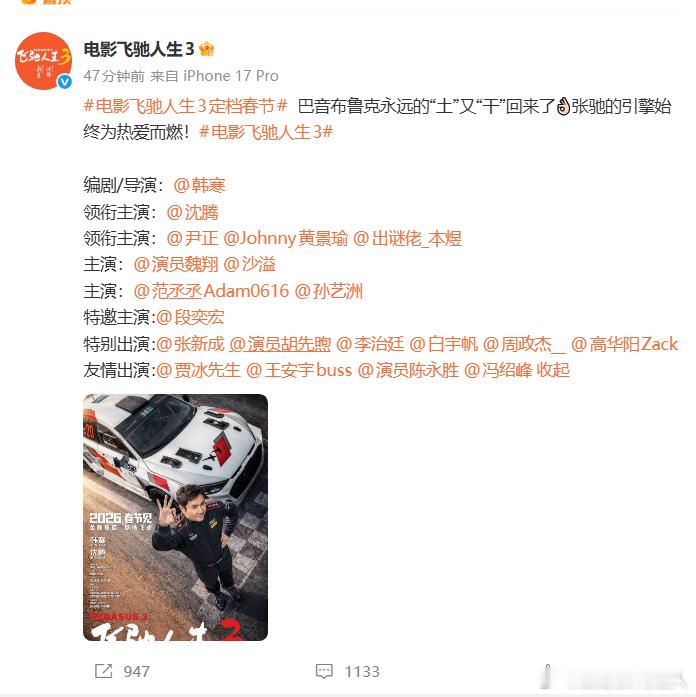 飞驰人生3没有于适于适不参演飞驰人生3 于适不参演飞驰人生3成定局,粉丝惋惜之余也期待他后续新作。影片集结多位实力演员,春节档将续写飞驰热血传奇。