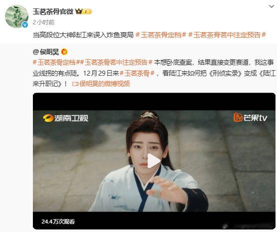 侯明昊两部新剧同时上星侯明昊逍遥玉茗茶骨同时上星侯明昊《逍遥》《玉茗茶骨》同时上星,仙侠探案与宅斗权谋双线并行,双剧质感拉满。