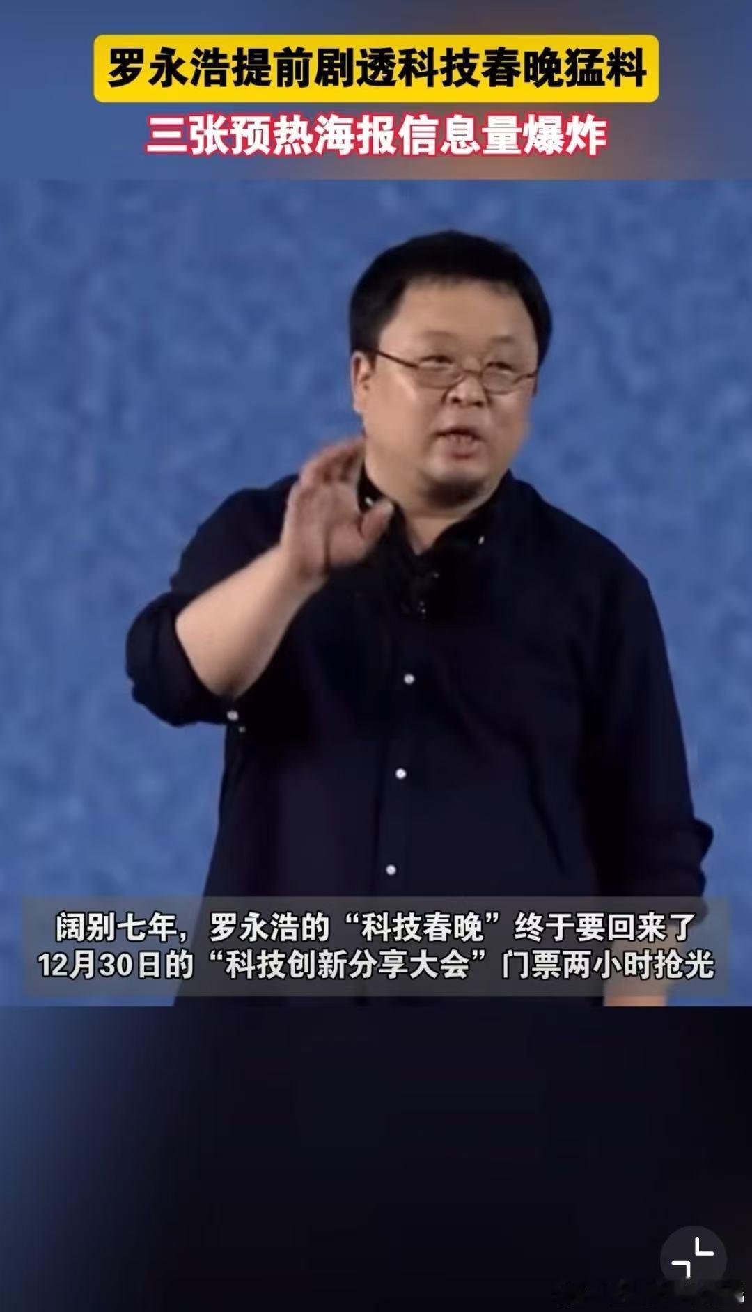 罗永浩提前剧透科技春晚猛料 真的服了老罗的操作!科技春晚回归玩神秘小字吊胃口,门票两小时秒光还全捐公益,这波情怀和诚意直接拉满,必须蹲直播!