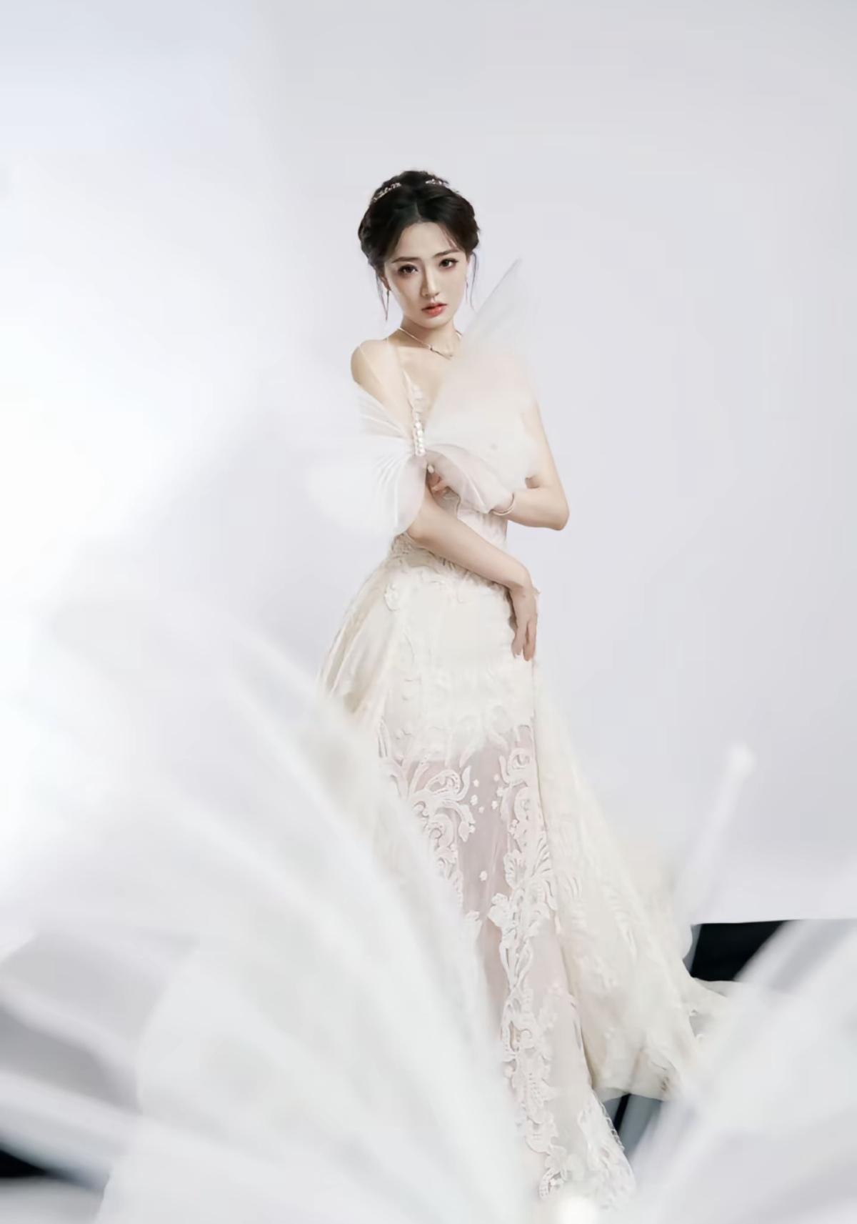 轻纱质感的白色抹胸裙,层叠裙摆漾着灵动气息,徐璐举手投足间既有少女的清甜,又有
