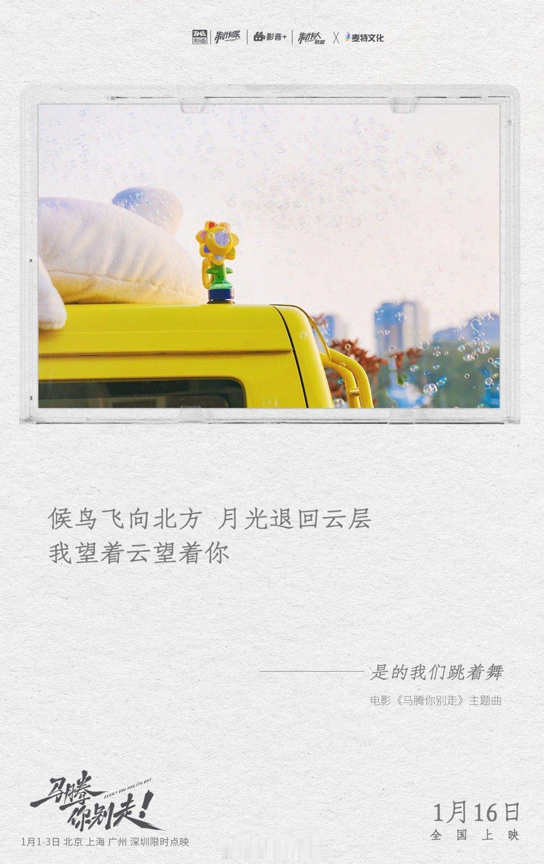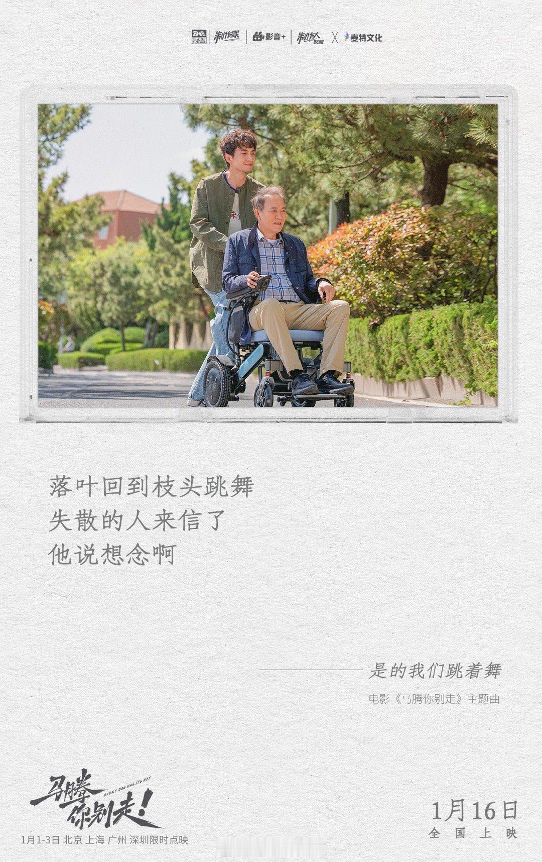 张靓颖毛不易献唱马腾你别走主题曲电影马腾你别走元旦限时点映元旦限定感动上线!张靓颖毛不易神仙合唱主题曲,搭配林更新李幼斌的反差萌演绎。《马腾你别走》以荒诞故事讲透生活本质,陪伴消解孤独,歌声传递希望,笑泪交织中解锁重新出发的勇气,限时点映不容错过~
