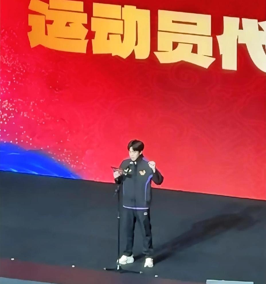 万万没想到, 南京乒超总决赛宣誓人是王楚钦。 南京乒超总决赛今日开赛, 昨天还看到有人说, 是鳗鱼代表运动员宣誓, 没想到是王楚钦。 他宣个誓吧, 内容不重要, 重要的是他这身衣服, 又被球迷们看上了。 球迷们纷纷调侃, 怎么什么衣服套他身上, 都这么好看, 真是行走的衣服架, 穿上都好看。 看王楚钦走路的姿势, 后背还是有点僵硬, 一定要保护好自己呀! (图片源自于水印)