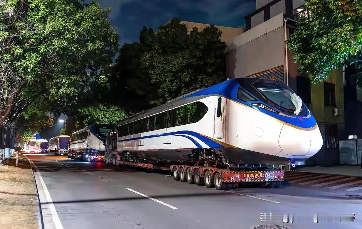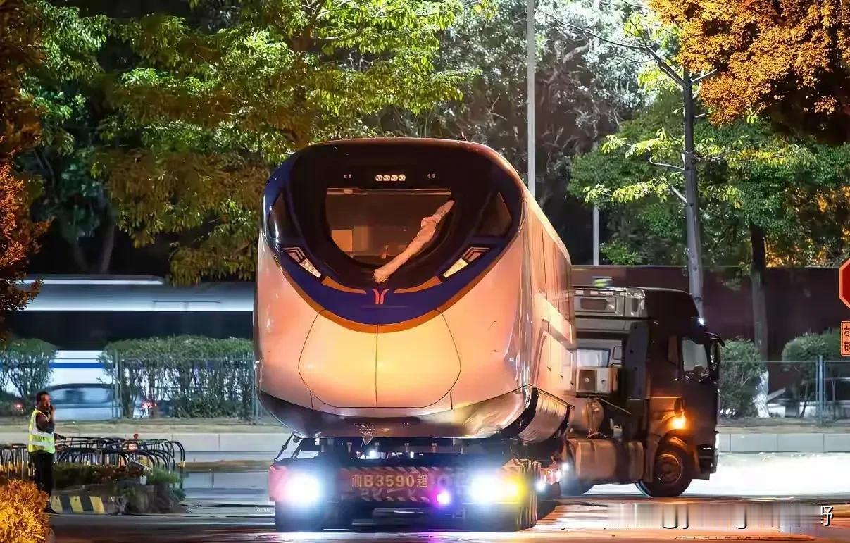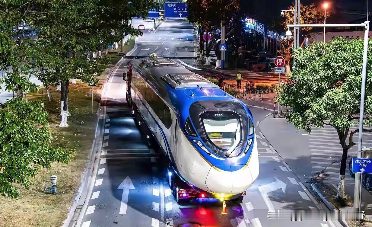 这是广州地铁18号线的列车吗?近期,有车迷在广州番禺的路段夜晚拍摄到这些列车的运输情况。在公路上看,这些列车的身影还是很庞大的。从涂装来看,看着像是18号线的列车。作为广州的一条远距离且快速的轨道线路,远期还将通往中山和珠海,这条线路还是有新列车的需求的。