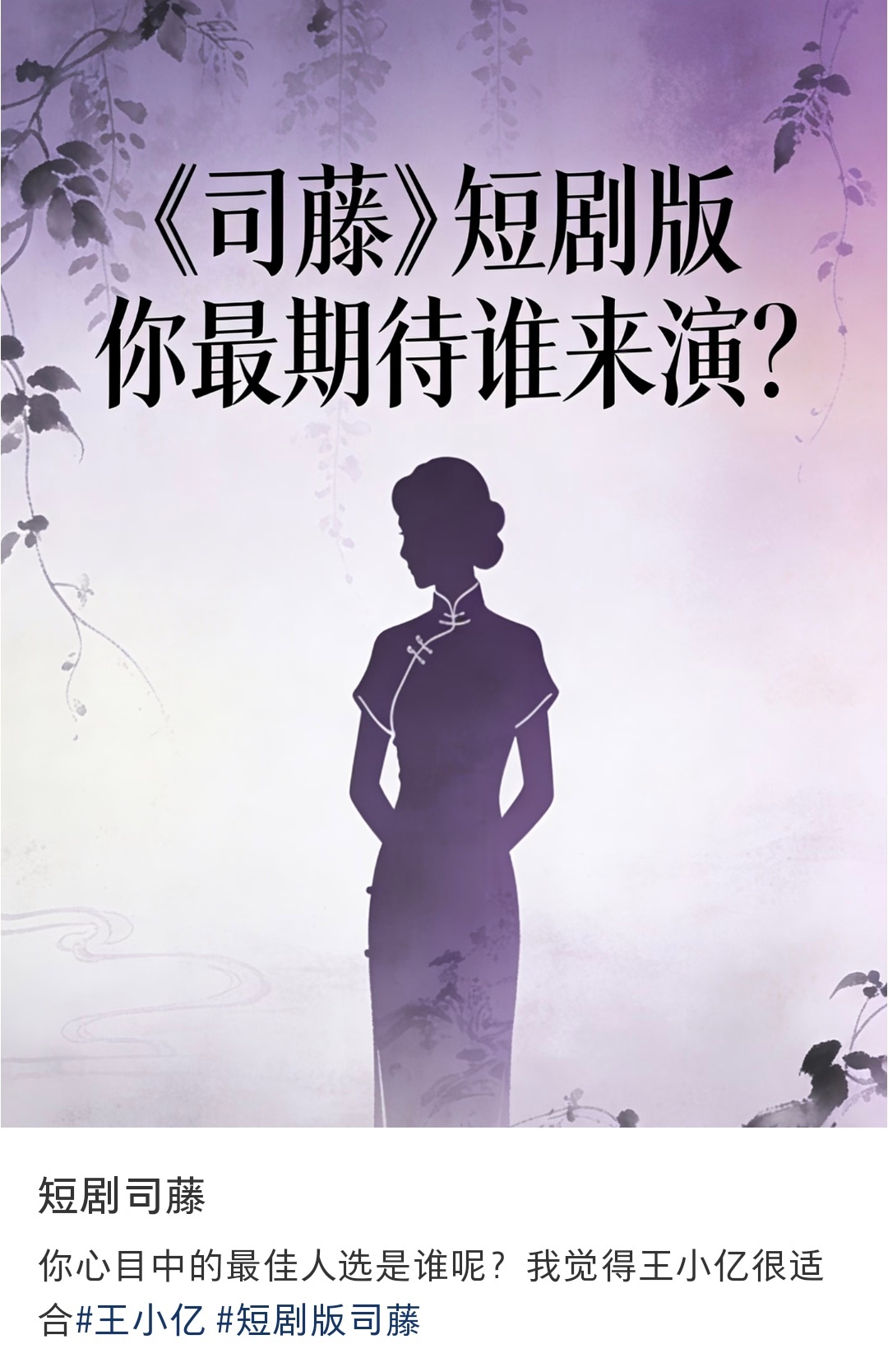 短国要翻拍司藤了,王小亿呼声还挺高