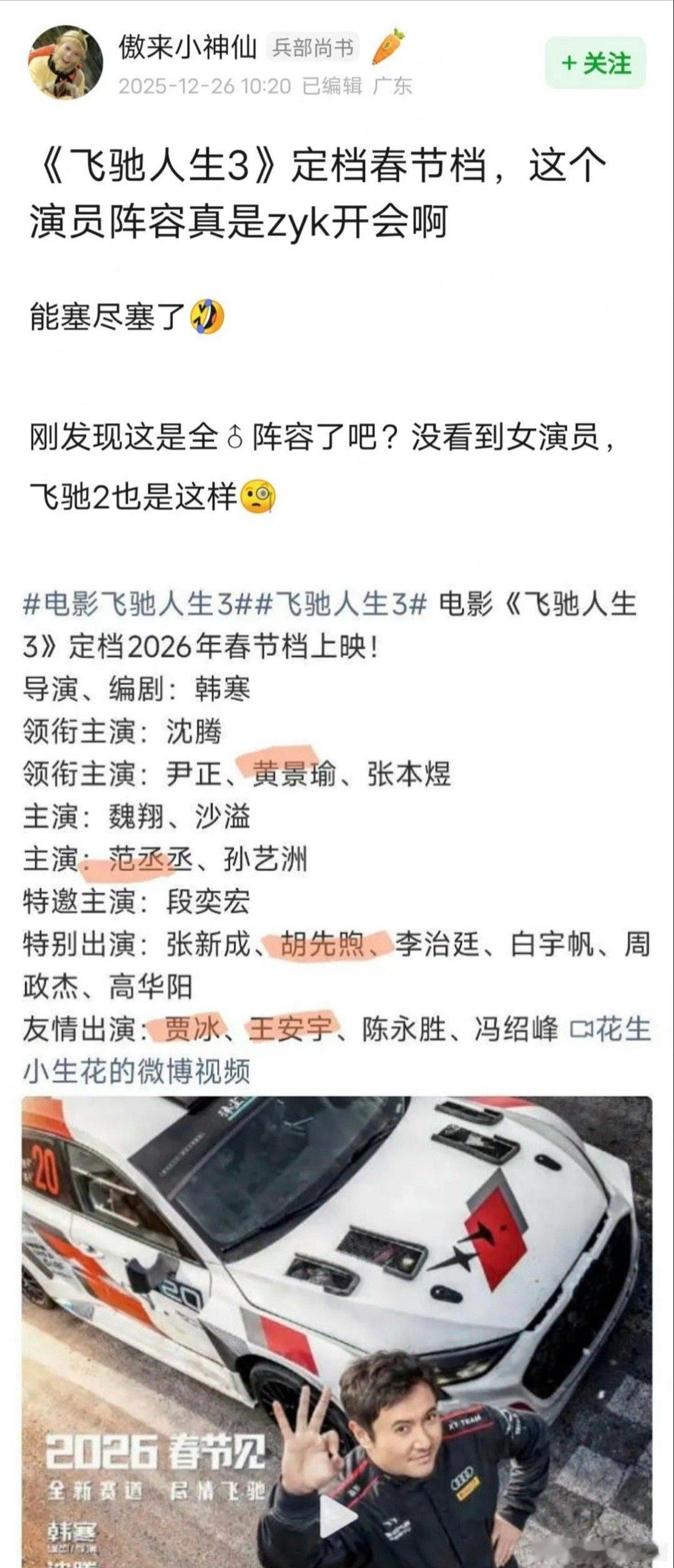 飞驰人生3被网友说是《现在就出发》大电影,基本zyk都去了