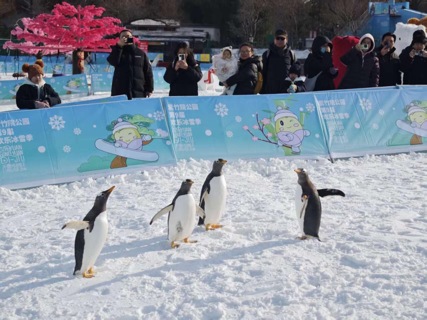 本届冰雪季精心打造三大体验升级,全面开启冰雪玩乐新篇章。科技互动趣味升级,创新引入智能机器狗与互动机器人,它们将与可爱的企鹅队伍共同巡游,献上精彩舞蹈及互动表演。游客可近距离接触这些“科技萌宠”,感受科技与冰雪碰撞的新奇体验,成为年轻群体与亲子家庭的新晋打卡热点。文化演艺氛围浓厚,特邀专业表演团队在冰雪季期间定时呈现川剧变脸、奇幻魔术秀等精彩演出,伴随小丑艺人在雪地中穿梭与游客互动,为现场营造热烈氛围。此外,环境美陈设计独具匠心,紫竹院公园IP形象竹笋宝宝将以全新造型融入本届冰雪季,与憨态可掬的企鹅、灵动的智能机器狗共同构成冰雪季的“萌系天团”。