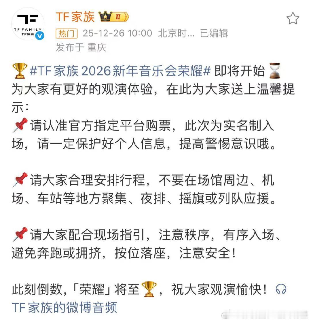 TF家族2026新年音乐会观演温馨提示 新年音乐会温馨提示来啦~一起期待今天的舞