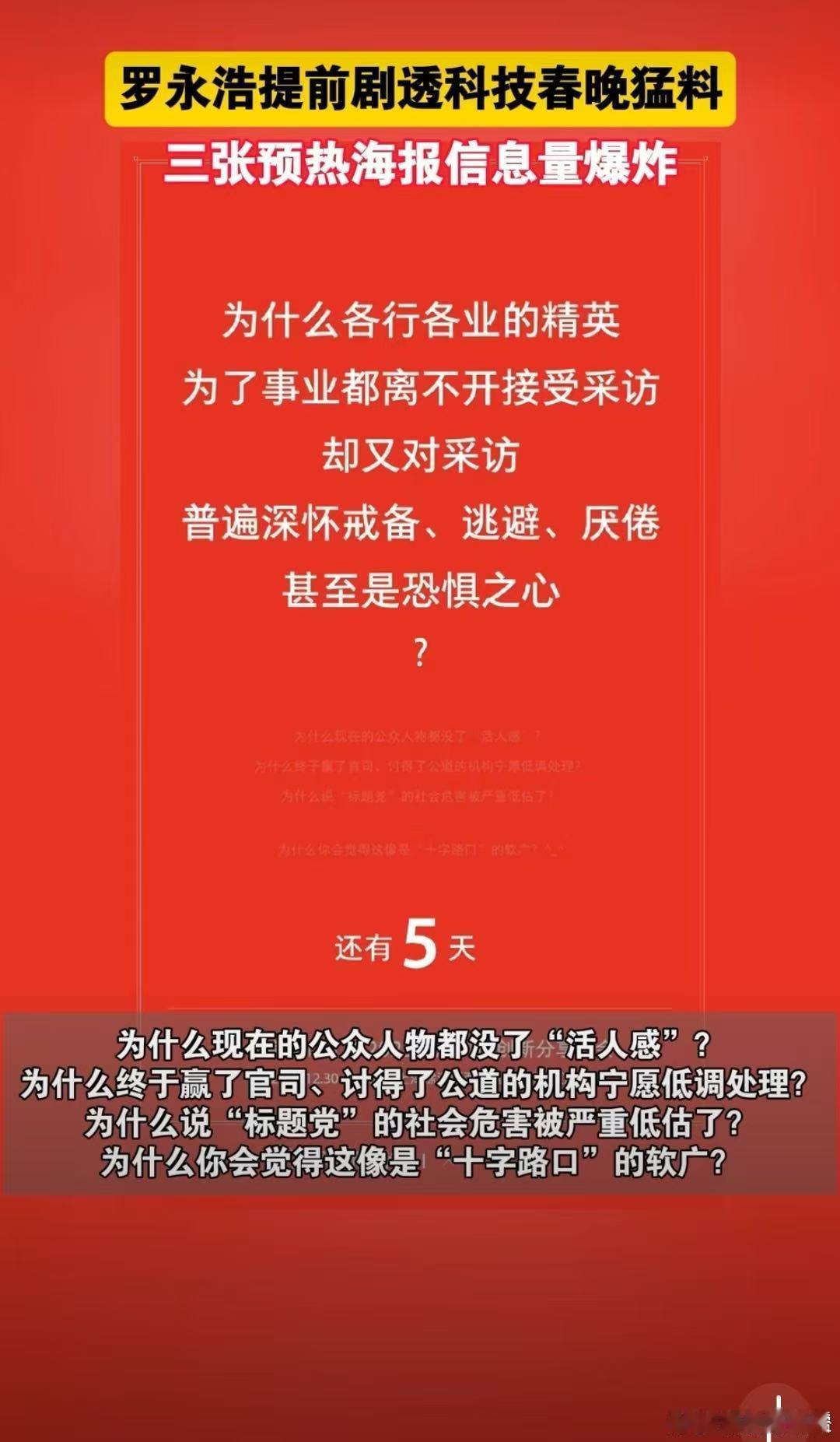 罗永浩提前剧透科技春晚猛料 老罗把科技发布会玩出新花样,海报小字造悬念引热议,门