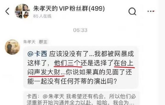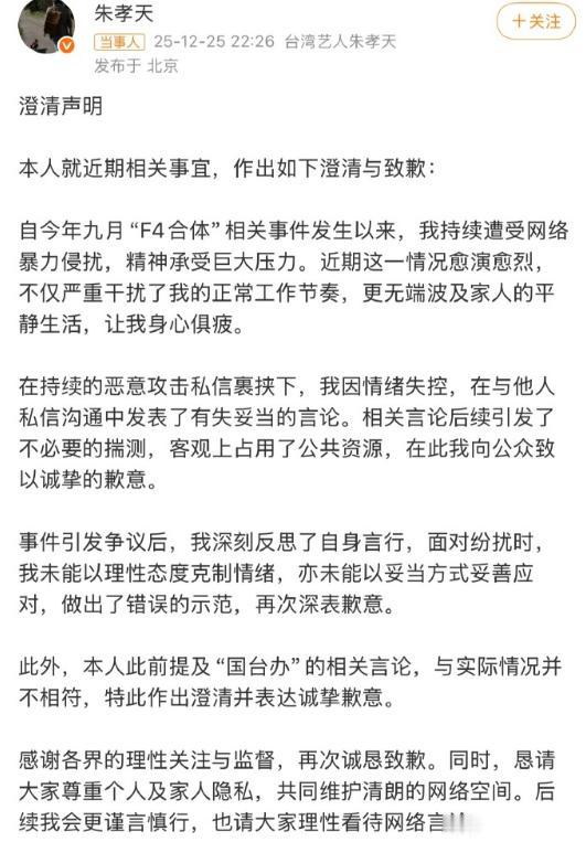 原本“F4”重新合体举办演唱会,对广大歌迷来讲是一件幸事,但由于刻意把朱孝天排除在外,拉来五月天阿信顶替,这事儿慢慢演变成了一场互撕大战。 一件件指控“勾结黄牛炒票”、“转移资金逃税”再到“假唱”,朱孝天可谓是“杀疯了”,疯狂暴击昔日队友、公司。冷静过后又是一篇道歉长文将争议言论归咎于“遭遇持续网暴导致情绪失控”。 但是对于指控的事情和被指控的人只字未提 ,看来心中还是有很重的怨气,事情也不会因此而结束。闹到现在可谓是两败俱伤,不知道前公司会不会后悔当初做出这么一个决定,也不知道五月天阿信后不后悔当初跳进这个漩涡。