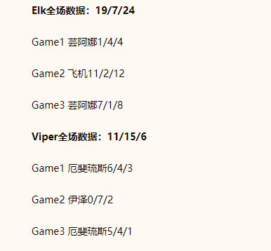 老公遭前夫爆线!Viper全场数据11/15/6,Elk全场数据19/7/24德杯小组赛,圣诞大战WBG 2:1 BLG。Elk面对老东家下重手,三局比赛均压制Viper;两人在本场Bo3的数据对比如下:viper全场最低分BLG和WBG倒一之战2025LPL