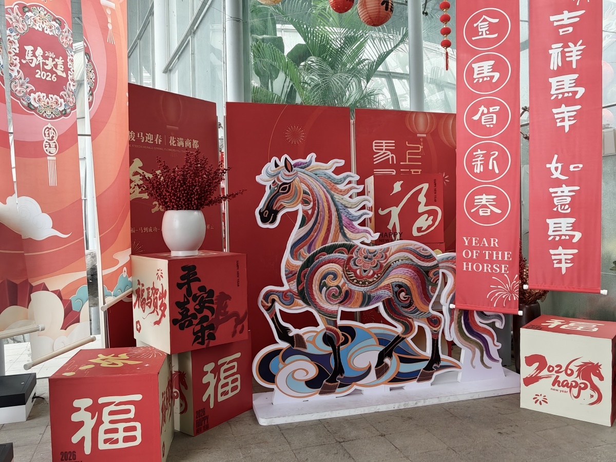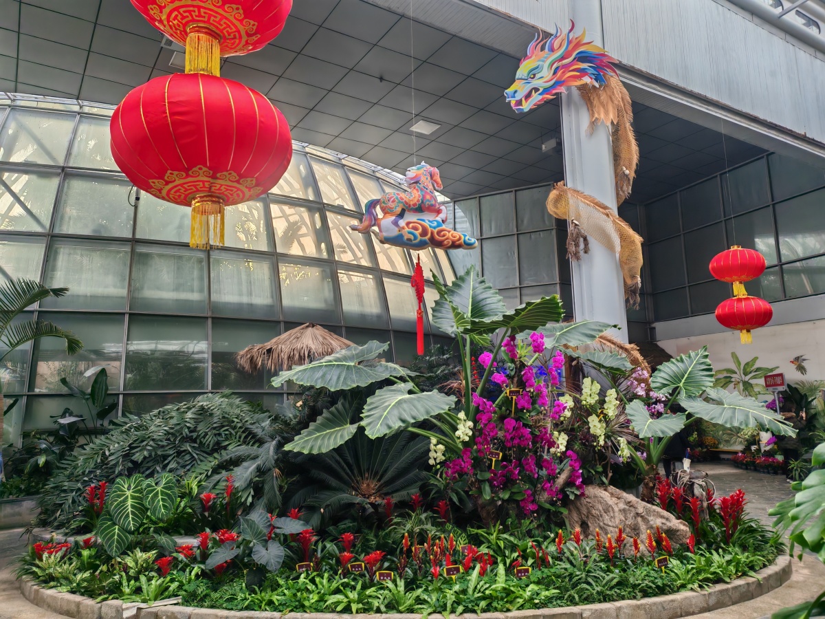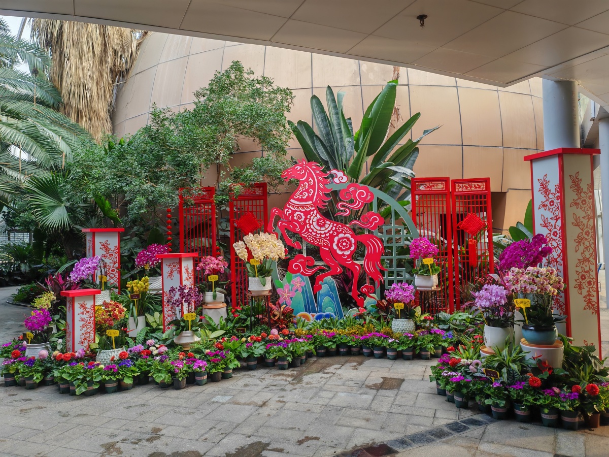 花展设置“马上有福”“马到成功”“龙马精神”“天马行空”“马踏祥云”及“花卉展示区”六大主题展区,紧扣生肖元素,融入地域文化与沉浸式体验,展示马蹄莲、蝴蝶兰、石斛兰、秋海棠等“马”年特色花卉及年宵花卉60余种、数千株。