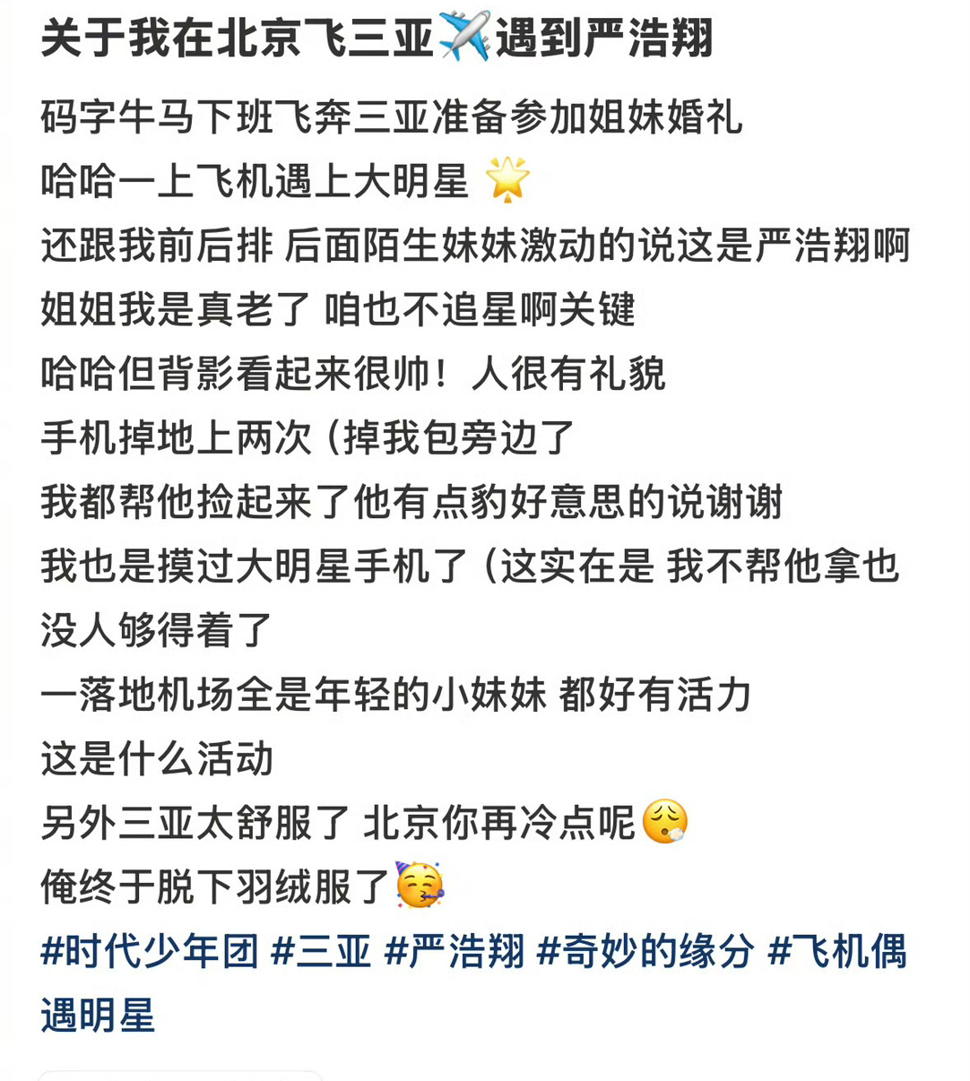 网友在飞机上偶遇严浩翔,还帮他捡了两次手机,这也太幸运了~