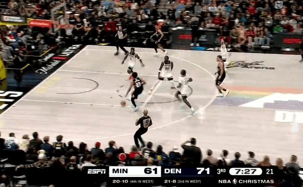虎扑12月26日讯NBA圣诞大战,掘金对阵森林狼的比赛正在进行中。