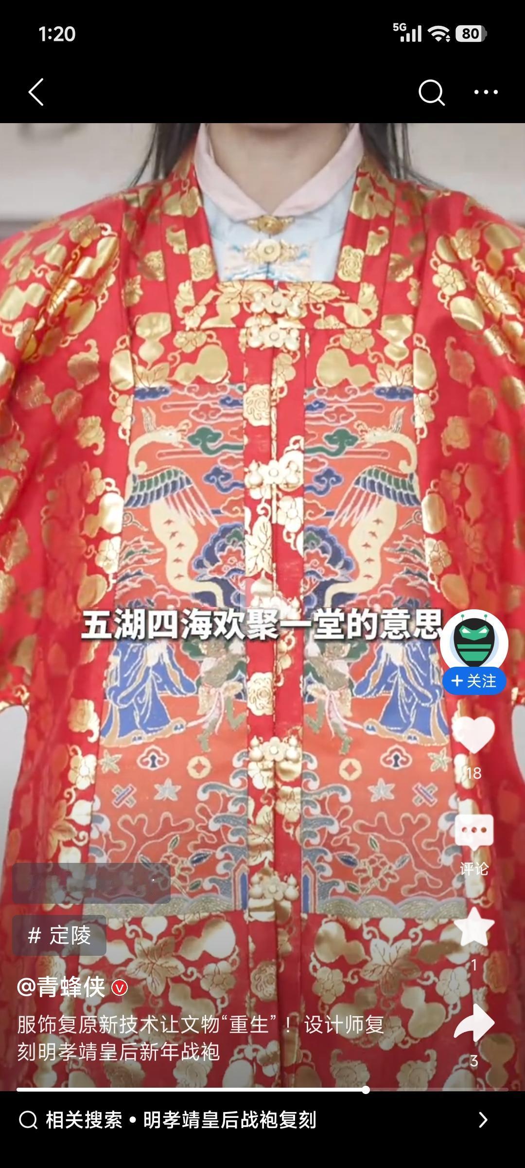 现在设计师的脑洞真是大,居然复刻明孝靖皇后新年战袍!就像之前南京云锦和《闪耀暖暖》合作,复刻明代孝端显皇后吉服,那可是历经8个月才织就而成的。老匠人们一道道工序精心制作,让南京云锦这个“锦中之冠”破圈走进年轻人视野。还有三个年轻匠人花两个月,用琉璃复刻明孝端凤冠。凤冠造型精巧,他们不断摸索,解决琉璃破碎、固定构件等难题,用传统博山料做“红宝石”,电镀透明玻璃模拟珍珠。这些复刻不仅是技艺的展现,更是和历史的一场对话,让传统文化在现代重生,太酷啦!