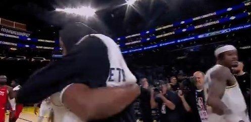 对比明显!詹姆斯赛后立即返回更衣室 杜兰特与湖人球员逐个拥抱 火箭vs湖人