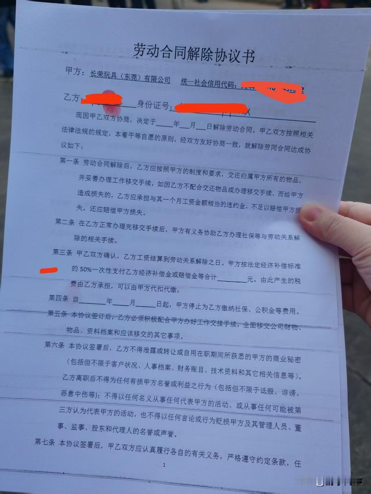 东莞规模最大的玩具厂——清溪长荣玩具厂宣布停产,同时为员工发放经济补偿金。 长荣玩具厂于1998年成立,是香港华盛玩具集团旗下9家子公司之一,在鼎盛时期,它是一家员工规模达15000人的玩具制造巨头。 近期,长荣玩具厂订单持续下滑,12月15日发布实行8小时工作制的通知,12月22日又发布公司停工、停产、员工放长假的通知。这引发了全厂员工与公司领导对峙抗议的场面,在网上闹得沸沸扬扬。 经政府出面协调,劳资双方经过几天谈判后,母公司华盛玩具高层决定终止长荣所有运营。安排公司与员工协商解除劳动合同,并做好给予经济补偿等善后工作。 网传清溪长荣的经济补偿标准为2n+5,但从长荣出具的这份《劳动合同解除协议书》来看,实际情况与网传差距有点大。
