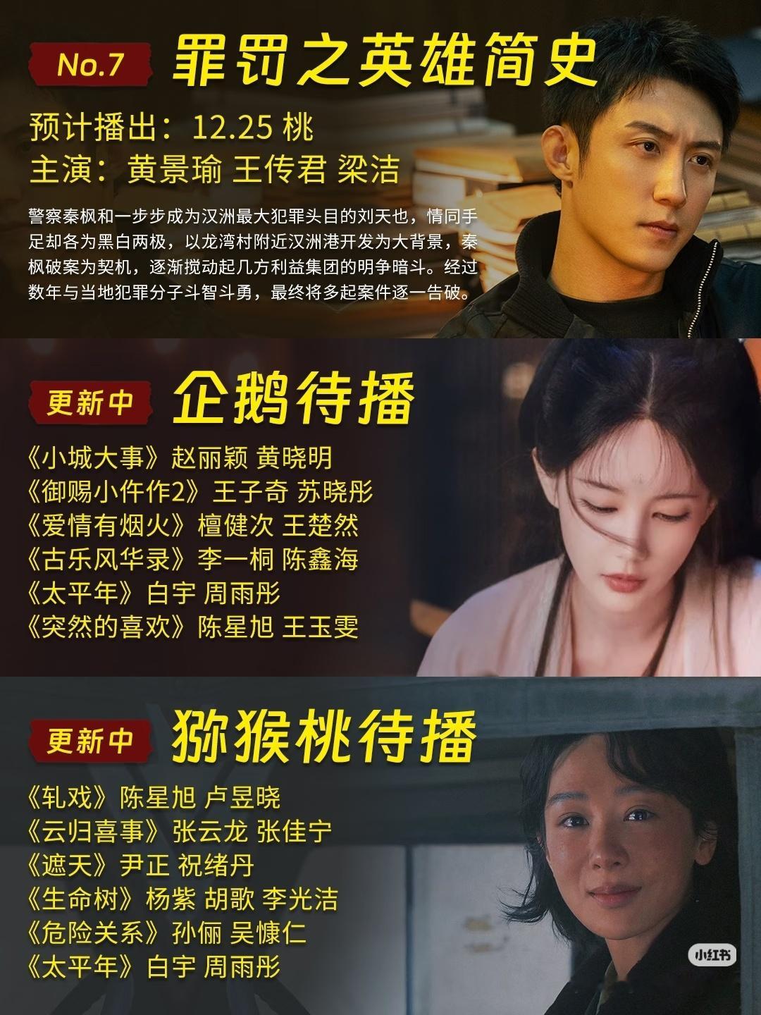 12月底7部待播剧 7部「新剧」12月底播,你觉得哪部会爆?已经到2025年最后
