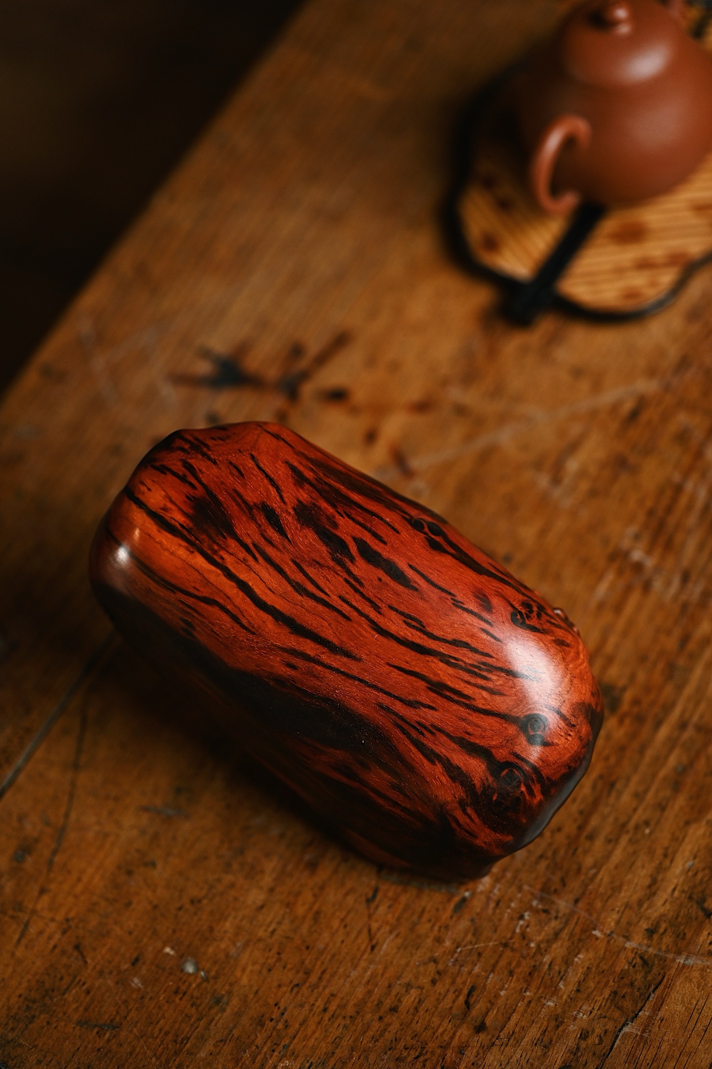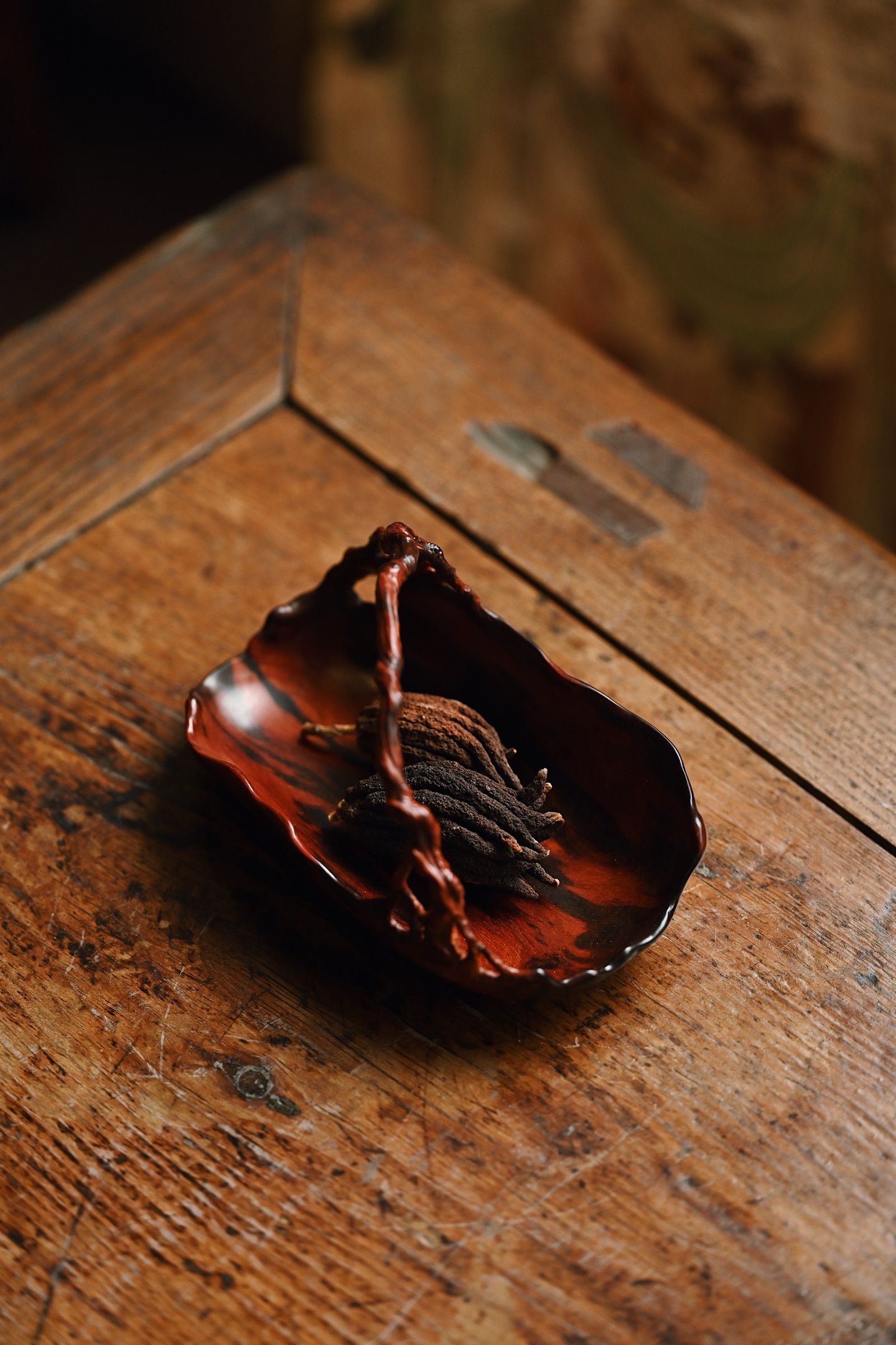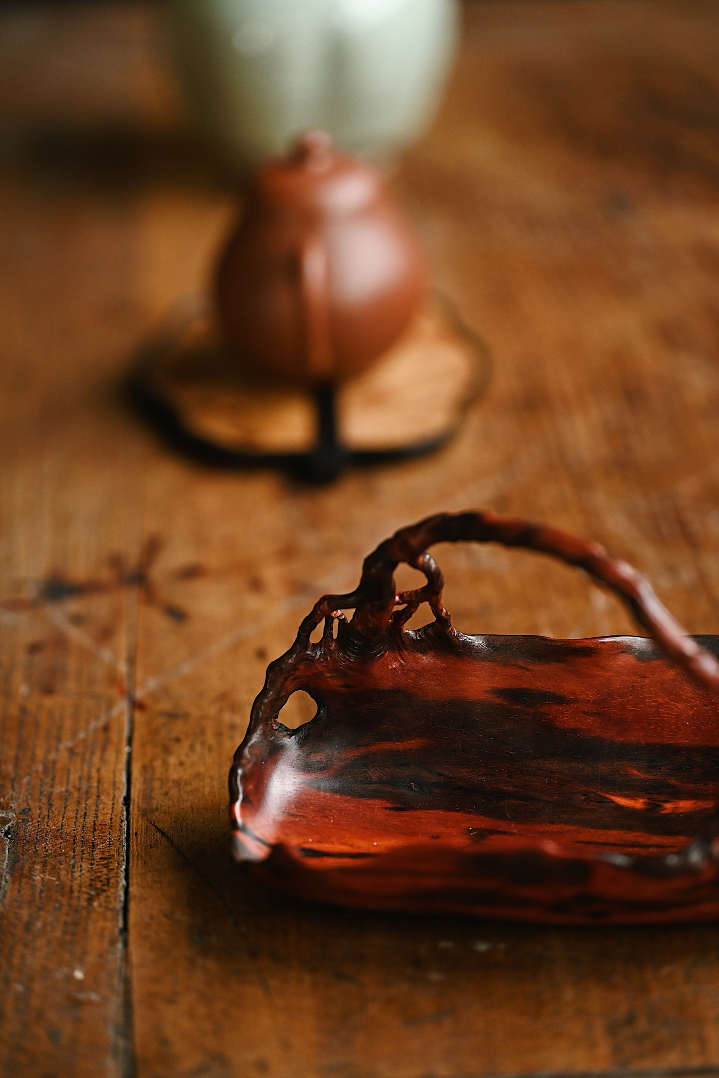 小叶紫檀 | 小果篮取料天然,巧思妙艺,随其料镂空雕刻盘根树节,盛瓜果静赏美景,空间内更显风雅之韵。15*9*9cm 88g