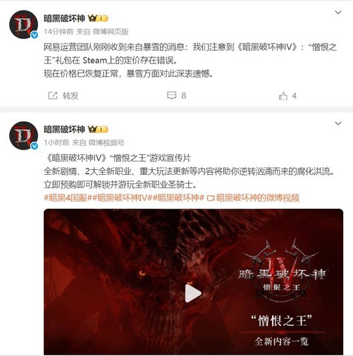 本来这应该是“新赛季国服回归和新DLC公布”的双喜临门,但很快玩家的注意力被另一件事吸走了:Steam国区捆绑包价格从原本低于战网的定价直接涨到488元,新DLC也涨到278元。随后网易发布了公告: