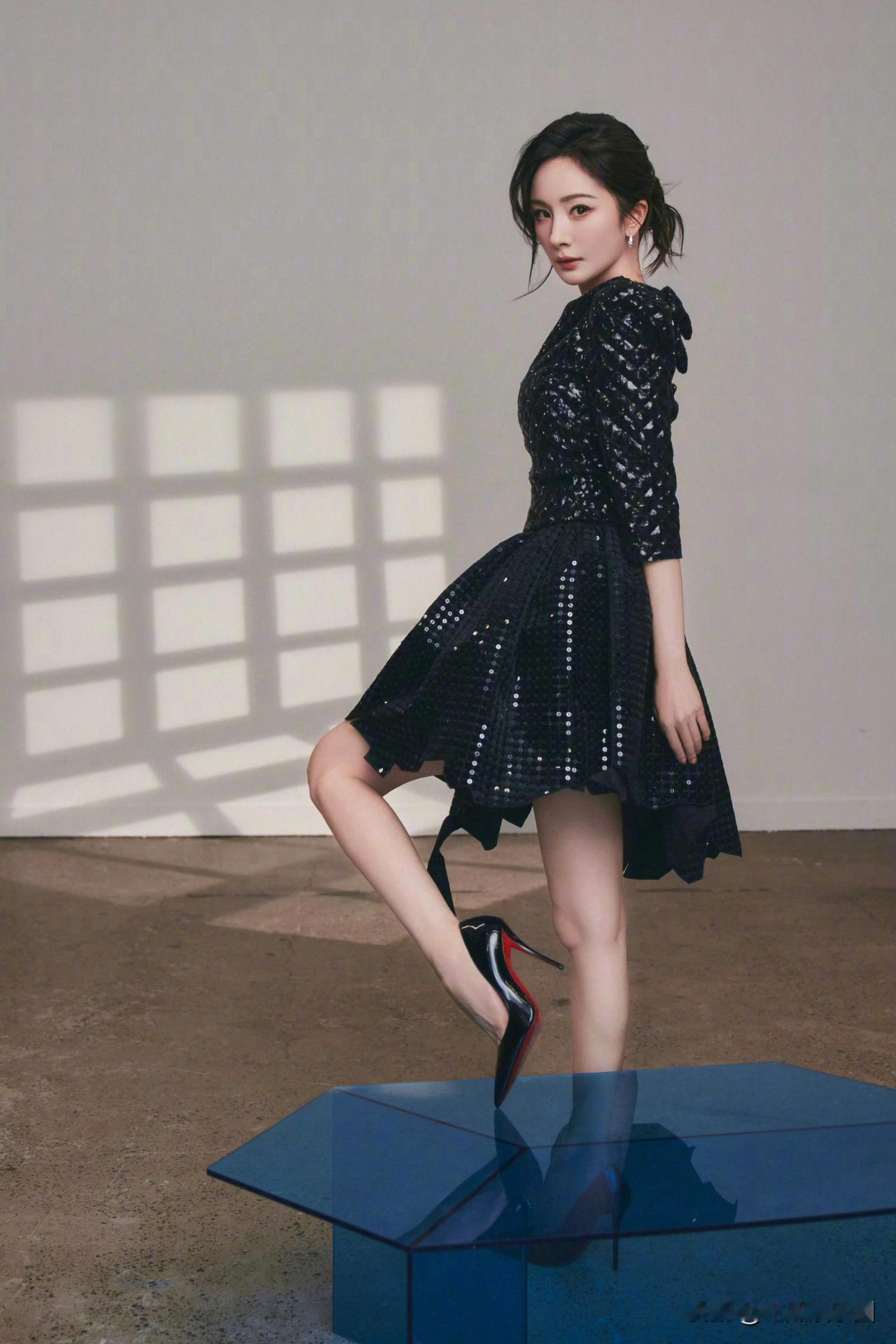 甜美少女风穿搭,黑白条纹连衣裙搭配黑色丝袜,简约优雅。