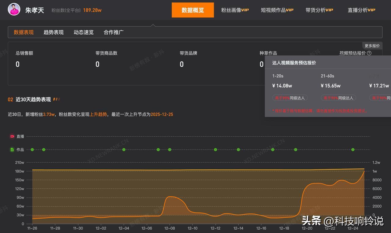 【朱孝天近30日涨粉超3万 朱孝天1分钟视频报价17万】朱孝天称因情绪失控发表失当言论 据报道,12月25日,昔日F4成员之一的朱孝天称,已举报五月天所属公司“相信音乐”,并配合相关部门完成官方调查。12月25日晚,朱孝天发布“澄清声明”,回应此前与“F4合体”相关事件。 第三方数据显示,朱孝天近30日涨粉3.73万。此外,其1-20s视频广告报价为14.08万,21-60s视频广告报价为15.65万,60s以上视频广告报价为17.21万。 天眼查App显示,朱孝天商标已被抢注,申请人为自然人王某某,国际分类为科学仪器,目前该商标已成功注册。 天眼查信息: