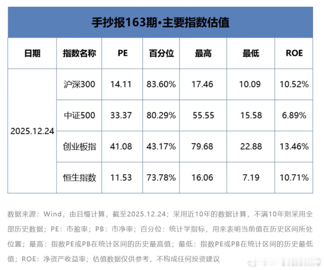 手抄报|163期:跨年行情悄然酝酿1、一周市场盘点:自上周三开始,上证指数走出温和的7连涨行情。市场氛围出现了微妙变化,从沉闷悲观到躁动乐观。局部开始讨论、憧憬,元旦之前,沪指能否再上4000点。卫星航天、光模块、人形机器人等主题投资方向人气较高,本周沪深两市的总成交额开始向2万亿靠拢。春季行情、跨年行情已经悄然酝酿,徐徐展开。2、估值变化:略有升温,其中A股主要指数大于港股主要指数。中证500指数的10年市盈率估值百分位重回80%上方。3、市场情绪:正常1)社区活跃度:本周社区中出现了LOF套利热,这股热潮甚至跨出投资社区,在微博、小红书等社交平台上也能看到。沪指7连涨,主题投资赚钱效应再起,但社区中也出现了一些懊恼的帖子,持有热门标的,在回调中不坚定,被洗出局的投资者,现在直拍大腿。2)媒体传播指数:白银LOF从涨跌到跌停,各路媒体聚焦,部分小白不懂规则,看错代码,闹出乌龙事件的报道更是成为笑谈。2025年ETF新发数量规模双创新高,财联社发表《2025年ETF发展十大关键词》。人民币汇率时隔15个月即将重返“6”时代,北京地产政策优化调整,也是本周的传媒热点。3)与投资者互动:投资者情绪上整体偏多,看好结构性市场行情,但也提防部分指数估值层面的中等偏高。事件驱动投资赔率高,部分投资者甚至开始探讨春节的投资机会了。从加仓意愿看,红利、自由现金流与主题投资(主要是科技),呈现两极格局,沪深300等普通宽基,大家的兴趣不大。4)新发基金:本周新发基金比较平淡,有两只三个月持有期FOF,分别募资6.5亿和9.7亿。上证综指增强ETF募资2.36亿。元旦之后的新发基金安排较多,部分基金已排期到春节前,各大机构期盼新年开门红。4、结论 本周系数:65、实证:无操作6、其他分享:风雨同舟又一年,开年的第一期手抄报,我们提出不以前几个交易日的表现定全年,要抛弃熊市思维,有序出牌,积极有为。2025年还剩下3个交易日,沪深300上涨18%,偏股型基金指数上涨近30%,手抄报系数从10到6,投资实证从浮亏到全面盈利,市场情绪曾一度升至较热……回顾这一年,期盼新一年,我们年年相伴,相向而行!
